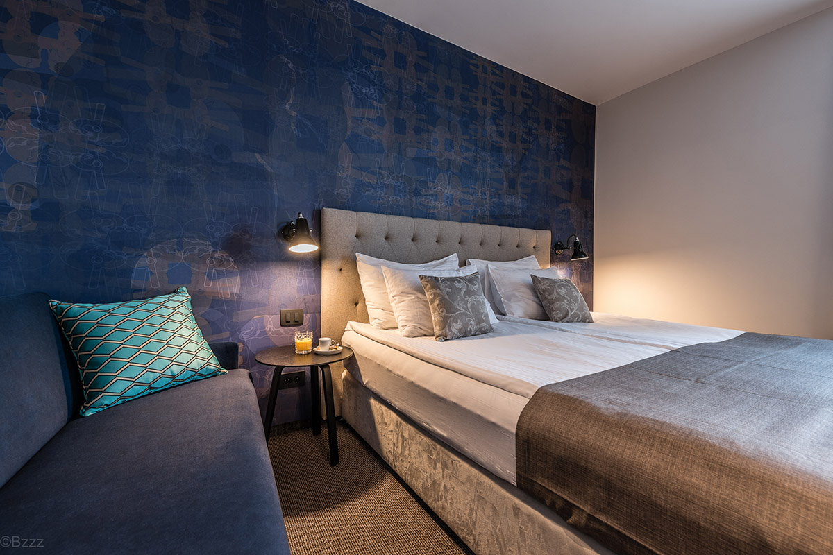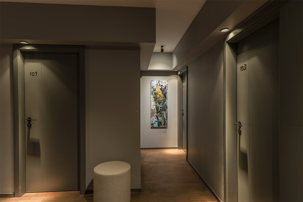 Hotel Mrak, 2020 Interier: Irena Brecelj, Loft d.o.o. Oblikovanje tapet: Julija Zornik Strle, JZS d.o.o. Foto: Blaž Zupančič