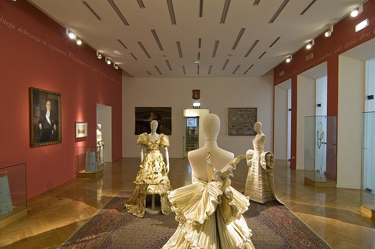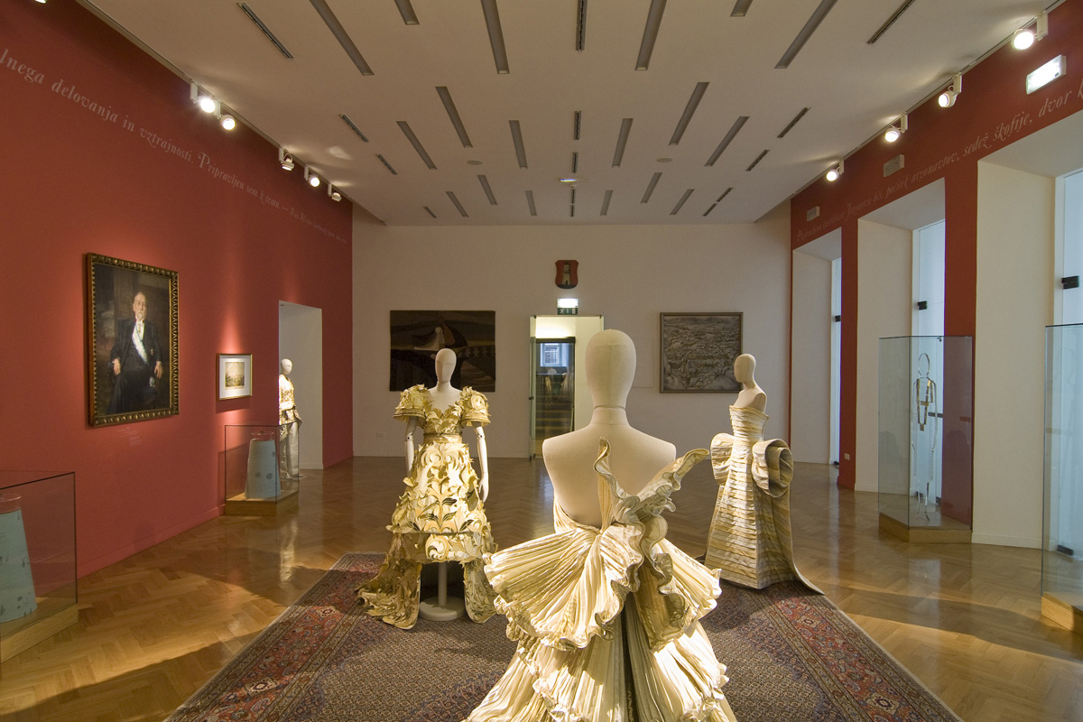 Razstava Roberto Capucci: Obleka/modna skulptura Mestni muzej Ljubljana Osvetlitev razstave: Strle svetila Foto: Blaž Zupančič