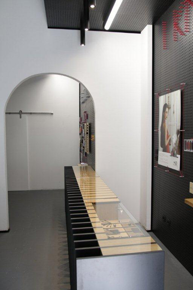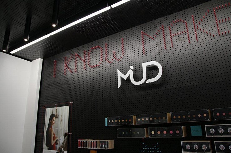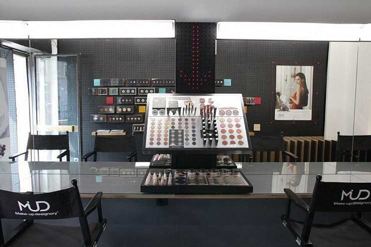 MUD Make-up designer, Milano, 2014 Koncept in arhitektura: Barbara Debevec, Lara Melon, Plusminus30 d.o.o. Oblikovanje in izvedba svetlobnega profila: Plusminus30 & Strlesvetila Foto: MUD