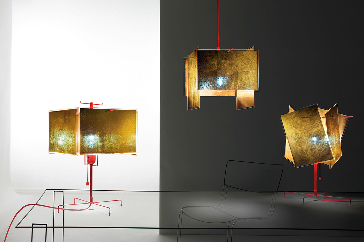 Dekorativna, igriva namizna luč nudi prijetno razpršeno svetlobo. Zlati lističi so uliti v plastične senčnike in omogočajo obešanje na palice v različnih zornih kotih in razdaljah. Na voljo tudi viseča različica.