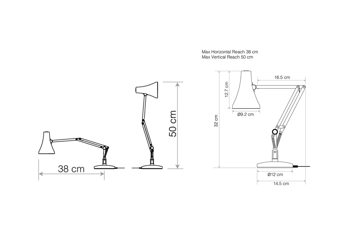 Popolno svetilo za posteljne omarice, mize in bralne kotičke. Napaja se prek kabla USB in ima integrirano LED diodo, ki jo je mogoče zatemniti za osredotočeno svetlobo do 20.000 ur. Za vsako prodano svetilo 90 Mini Mini bo Anglepoise 15 % cene podaril dobrodelni organizaciji Roald Dahl Marvelous Children.