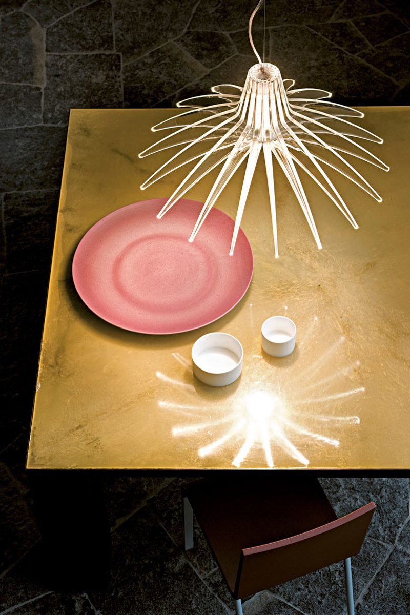 Viseče svetilo zaradi karakteristike materiala oddaja veliko svetlobe in ob enem ne blešči.