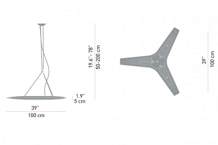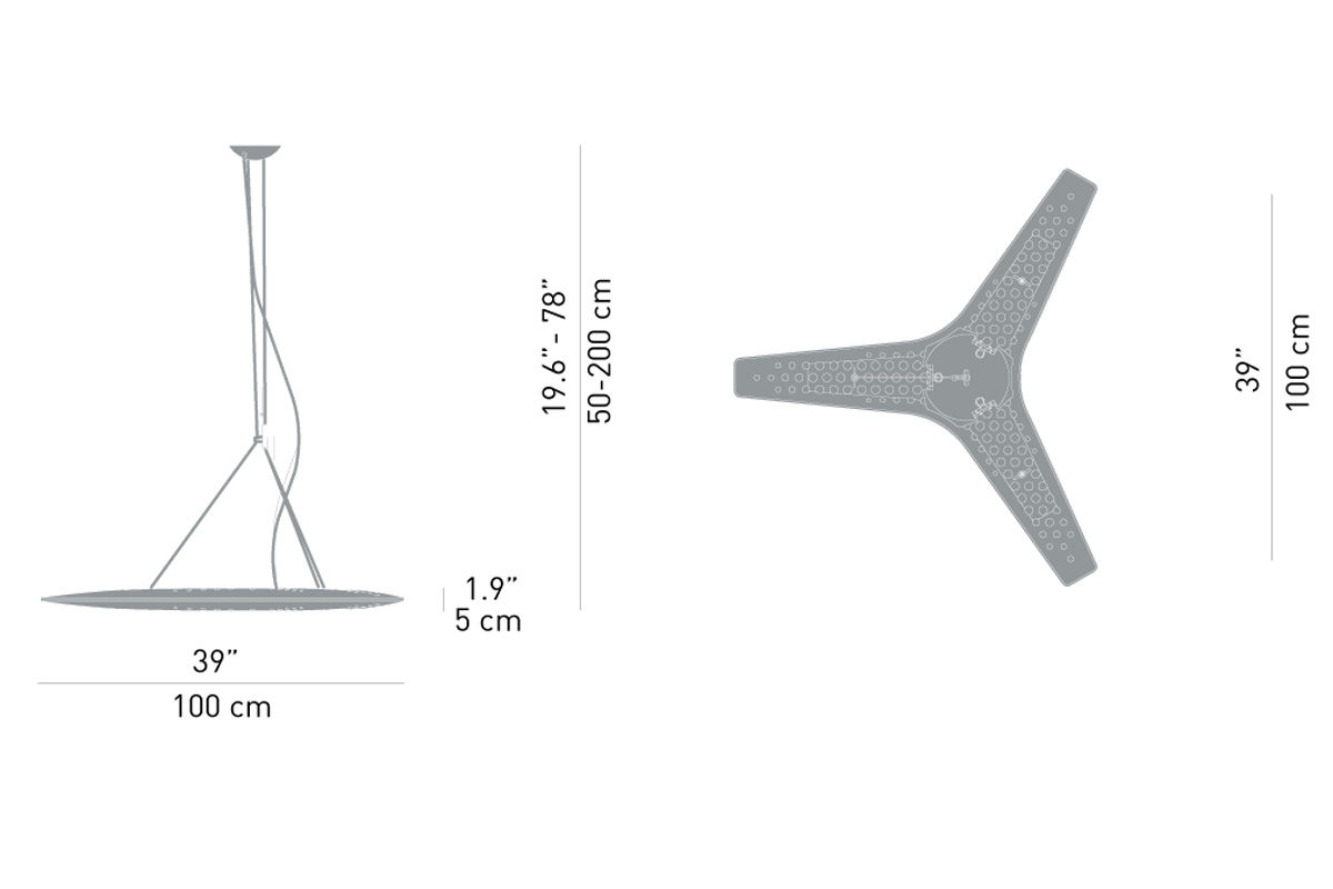 Viseče svetilo z direktno in indirektno svetlobo s stremi vir, je s svojo svetilnostjo in trikrako obliko primerno za osvetljevanje prostorov, kot so učilnice, vrtci in pisarne.