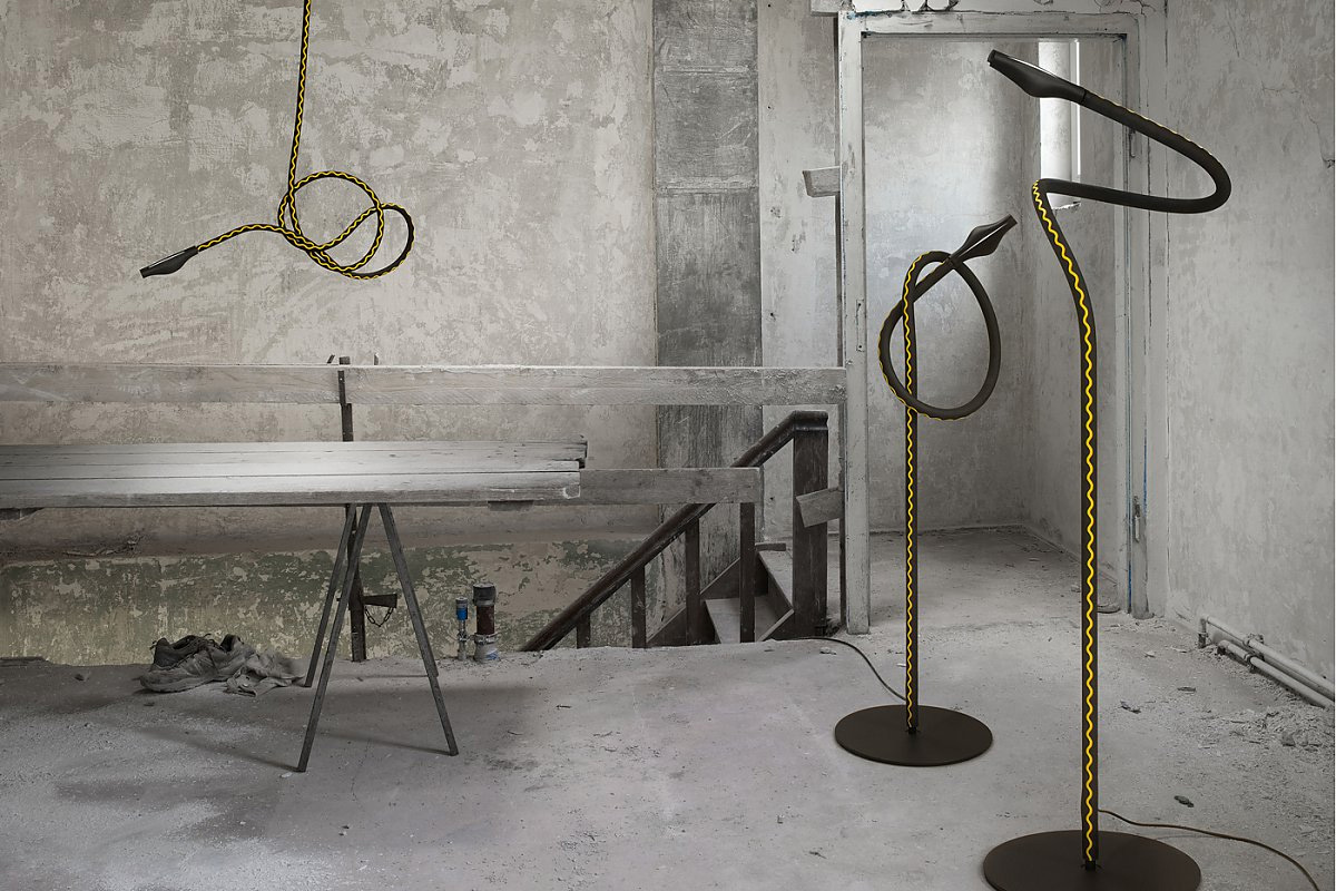 Duhovita talna luč z neskončno prilagodljivim sistemom, uporabniku omogoča prilagoditev usmerjene svetlobe različnim delovnim zahtevam. Igrivo luč, ki spominja na kačo lahko ukrivimo v vse smeri, v vseh pogledih je elegantna in se lepo poda v vsak ambijent. Na voljo tudi namizna in viseča različica.