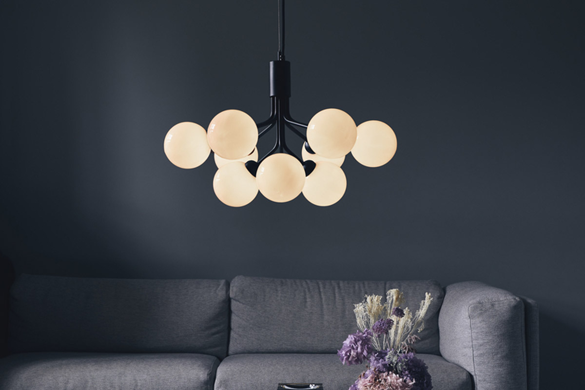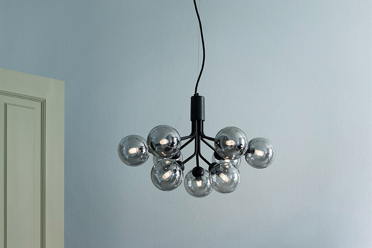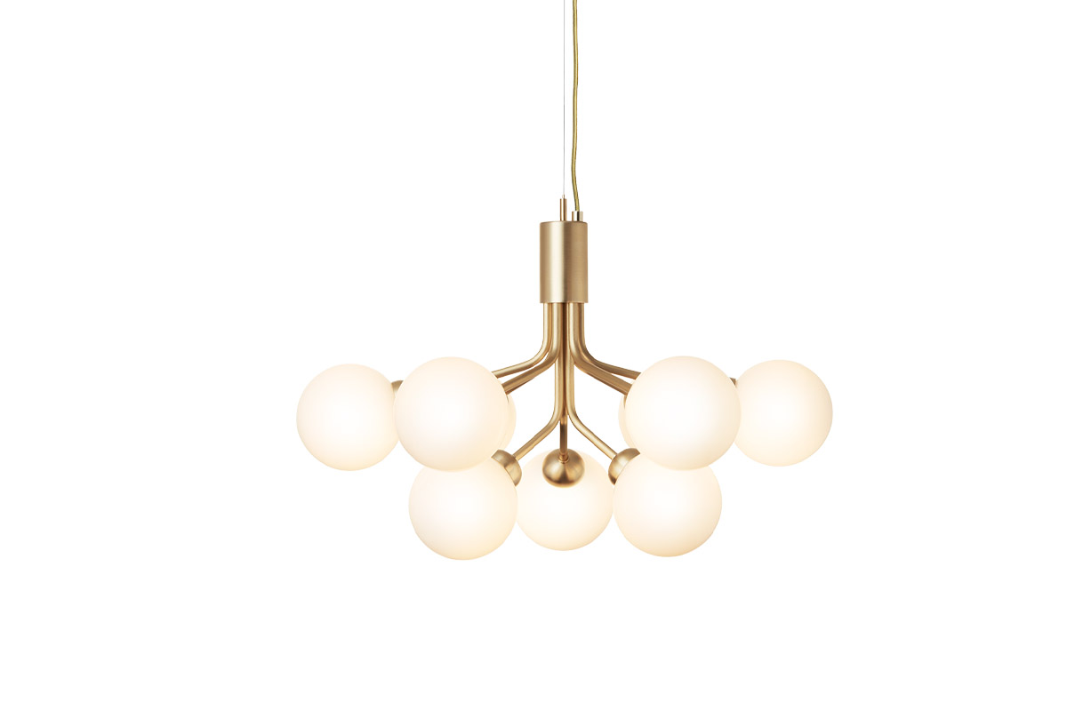 Svetilo spominja na drevo, kjer se cvetni stebli razpostrejo in iz katerih se z milino širi svetloba. Apiales 9 s premerom 60 cm se prilega jedilni mizi, spalnici ali hodniku.