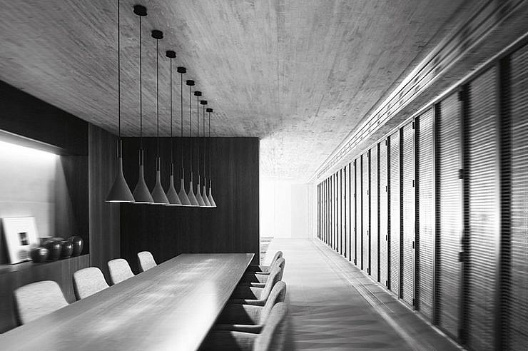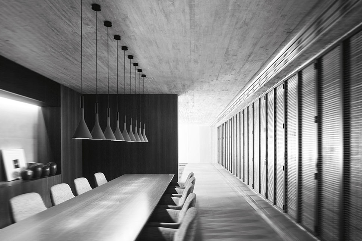 Poseben, ekskluzivno oblikovan beton igra glavno vlogo v svetilkah Aplomb, modelu, ki združuje prefinjenost s teksturo, da oddaja koncentriran žarek svetlobe navzdol.