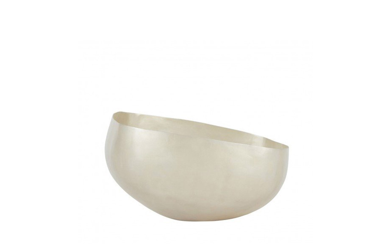 Posoda za serviranje prigrizkov iz neobdelane posrebrene medenine, 23,5x23,5x13 cm. Uporaba samo za suho hrano.
