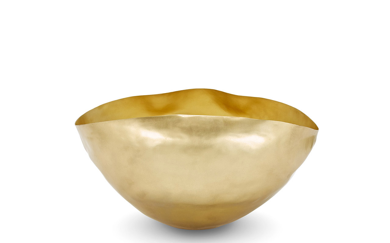 Posoda za serviranje prigrizkov iz neobdelane medenine, 16x16x31 cm. Uporaba samo za suho hrano.