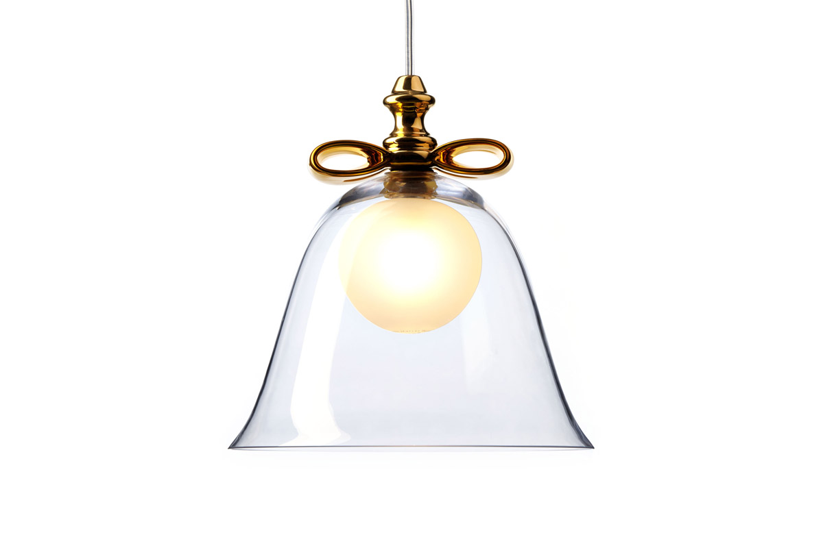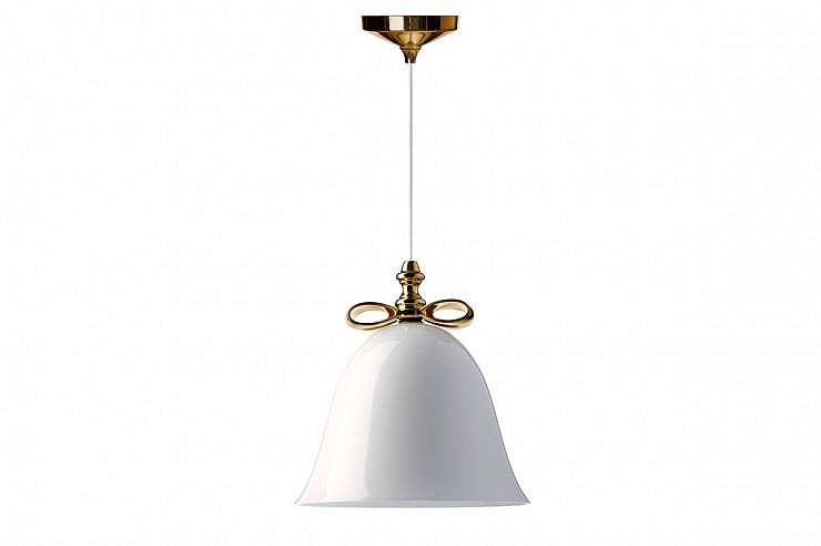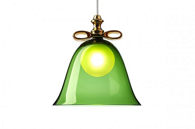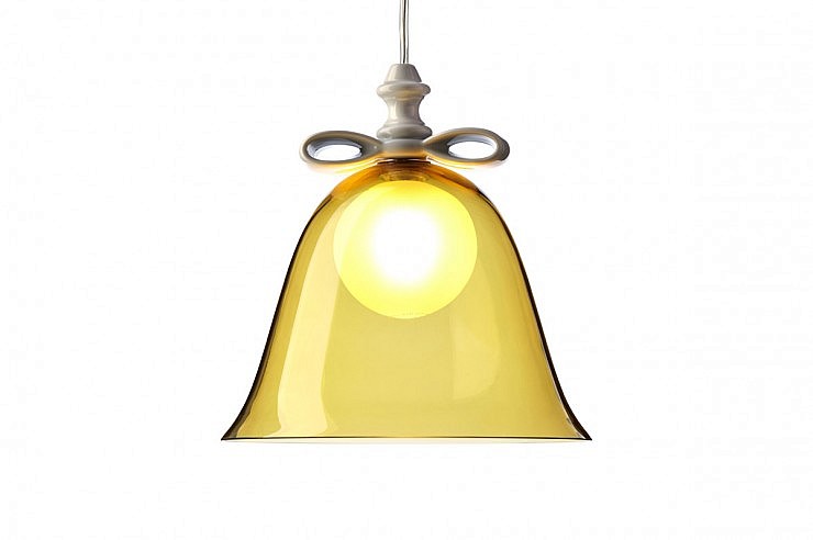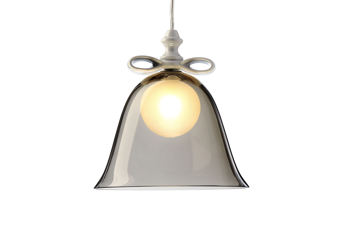 Viseče svetilo večjih dimenzij oblike zvonca. Izvedba v steklu ali keramiki.
