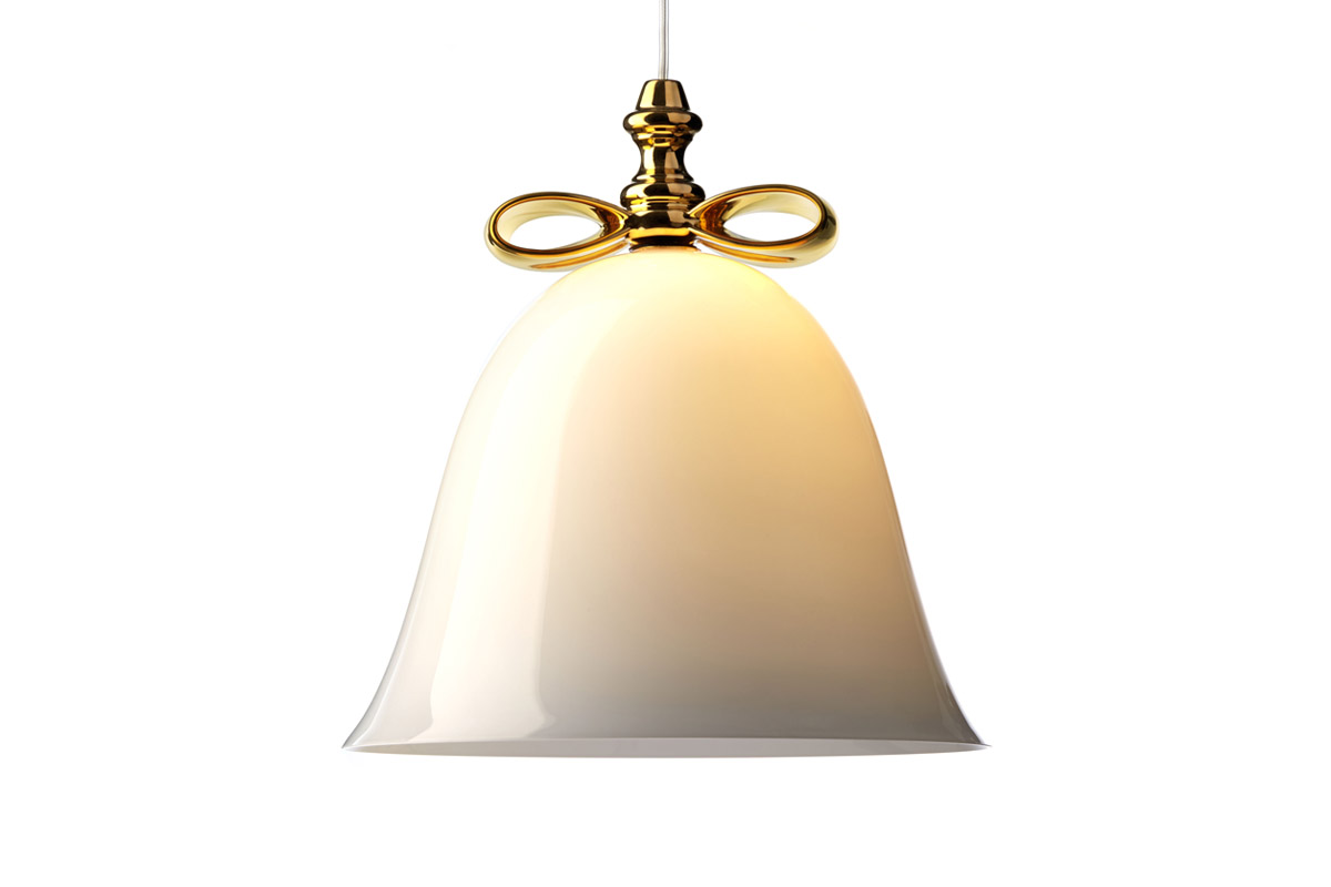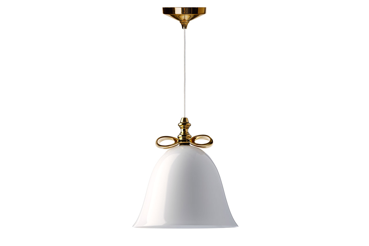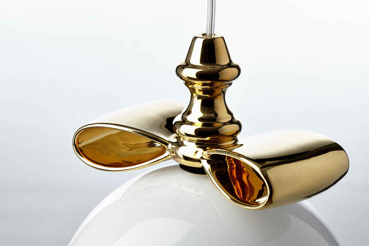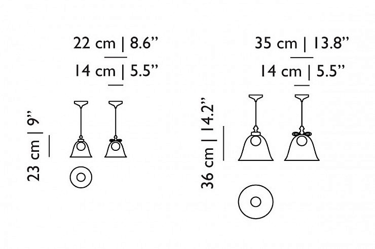Viseče svetilo večjih dimenzij oblike zvonca. Izvedba v steklu ali keramiki.