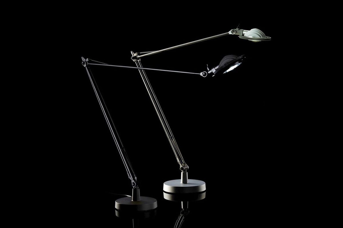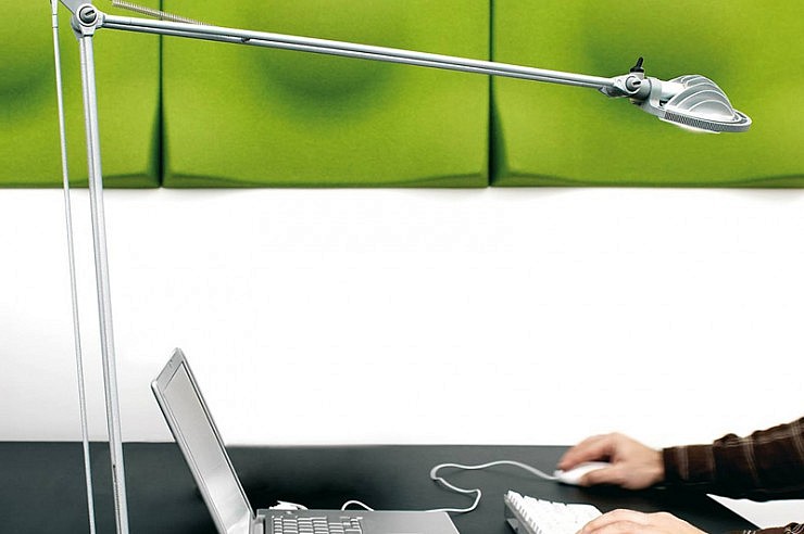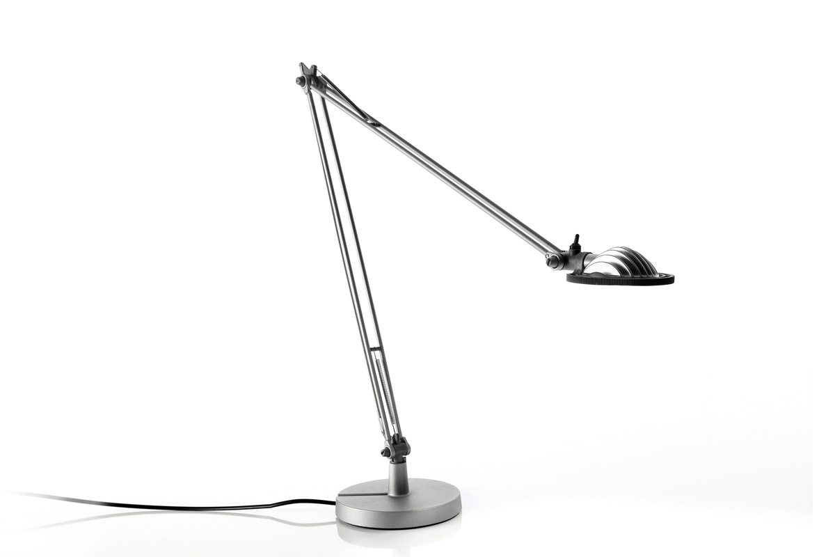 Namizno bralno svetilo z možnostjo različnih baz, primerno za delo z računalnikom ali branje.