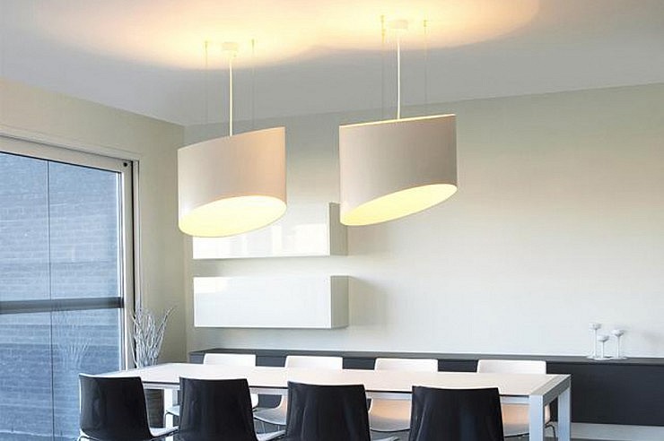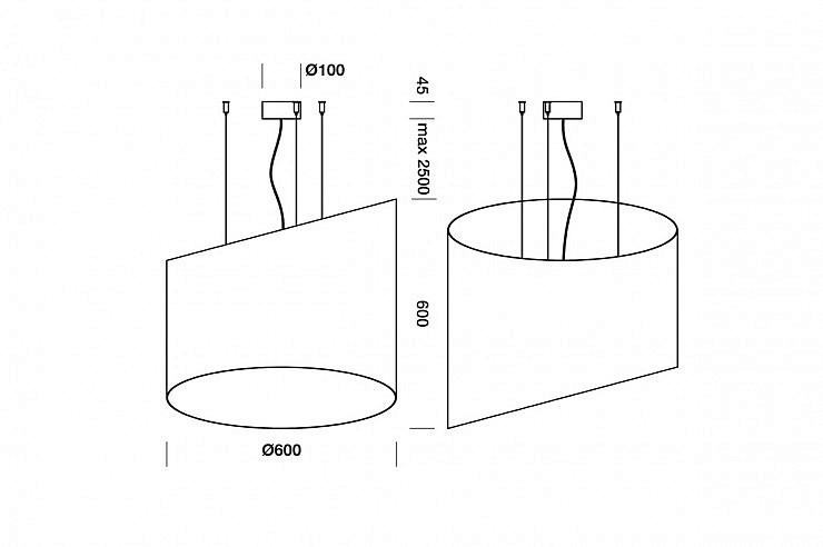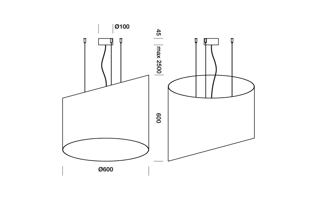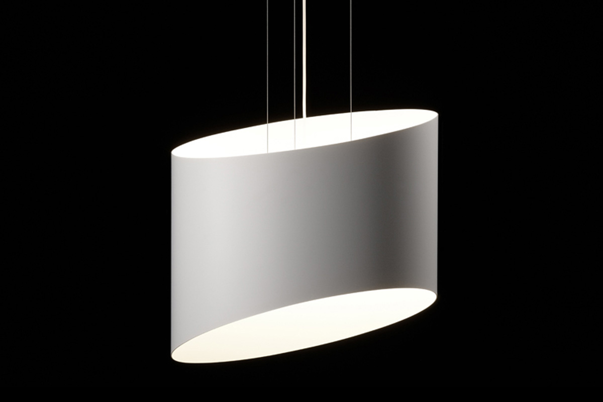 Oblikovno asimetrično viseče svetila, primerno za višje prostore ali osvetljevanje večjih površin. Možnost difuzorja.