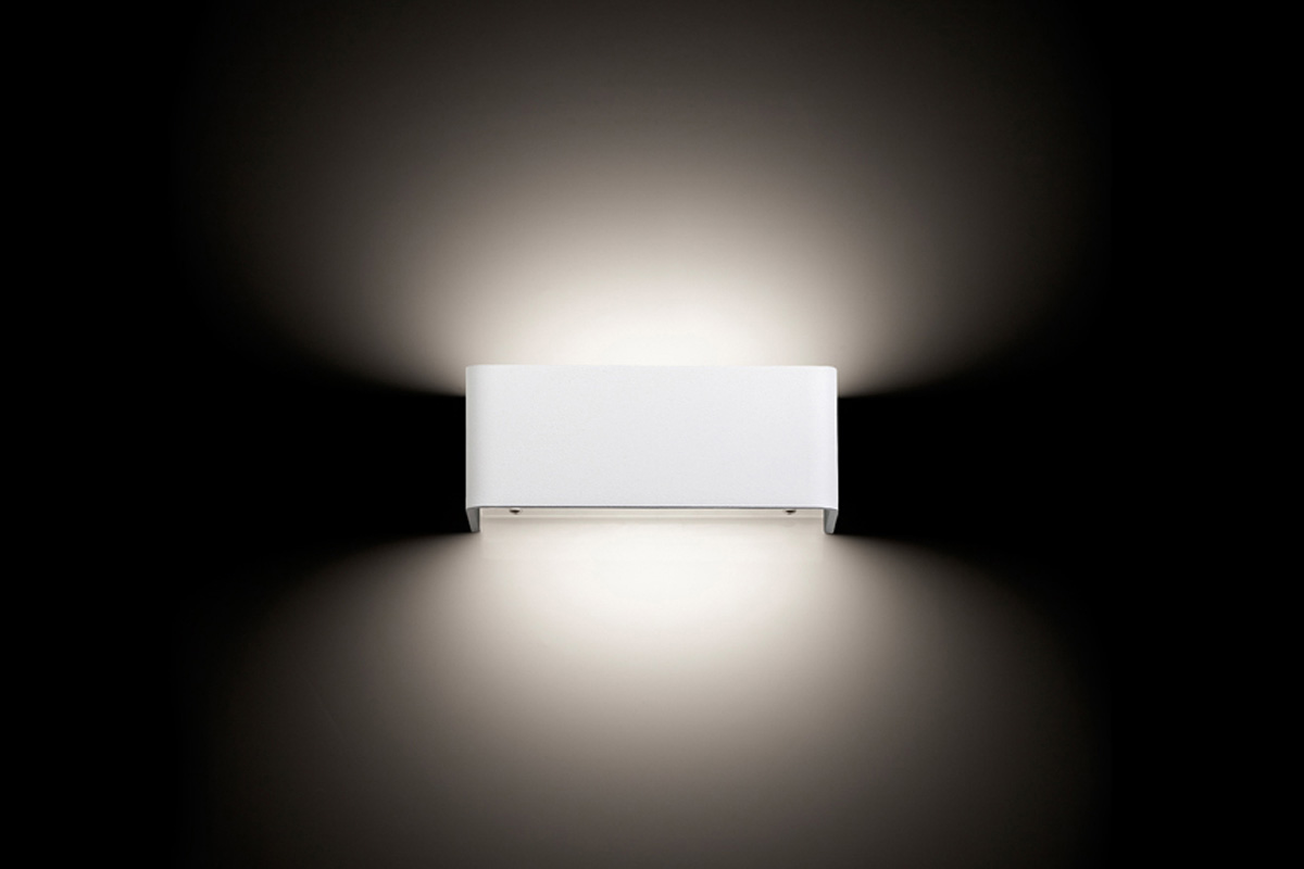 Stensko svetilo s svetilnostjo gor/dol. Svetlobni vir je zaščiten s peskanim steklom. Svetilo je primerno za dnevne sobe, hodnike, stopnišča ...
