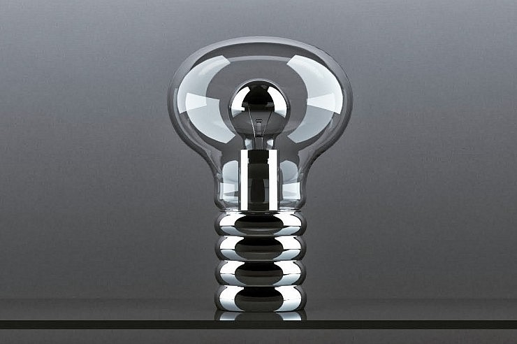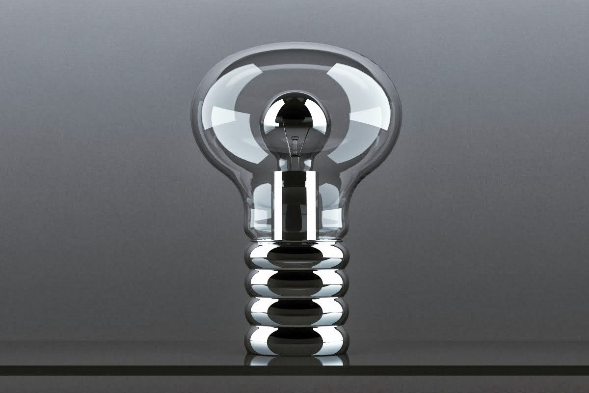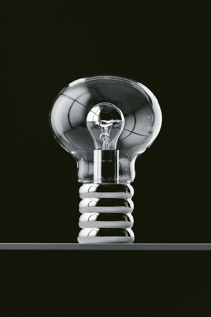 Brezčasna, vizualno zanimiva in konceptualno preprosta namizna luč je nastala leta 1966 in je prva izdelana luč s karero se je začela zgodba o uspehu Ingo Maurerja. Pod plivom Pop arta je nastala prevelika žarnica, ki poosablja duhovitost in igrivost.