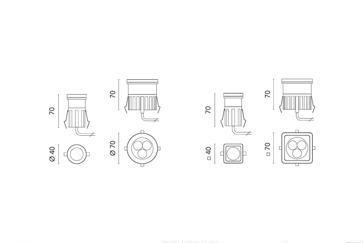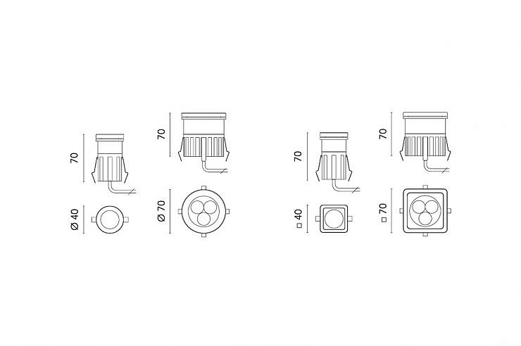 Vgradne talne ali stenske svetilke, na voljo v različnih velikostih, oblikah in kotih žarkov.