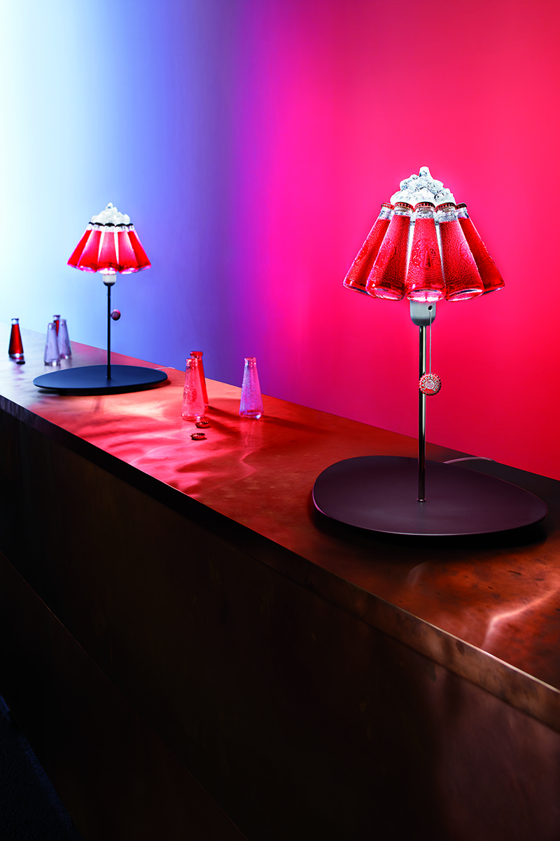 Izvirna in vizualno atraktivna namizna luč Campari Bar je sestavlljena iz desetih individualno snemljivih Campari soda steklenic. Luč Campari bar oddaja prijetno obarvano svetlobo in se najlepše poda v modernejše interijerje, v domače ali javne bare in restavracije.