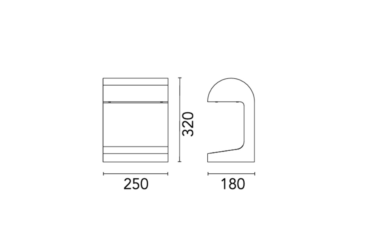 Preprosta oblika, ki s svojo nagnjenostjo k betonu spominja na obdobje brutalizma in se prilega vsakemu okolju.