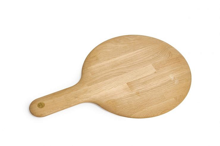 Rezalna in servirna okrogla deska iz masivnega hrasta.