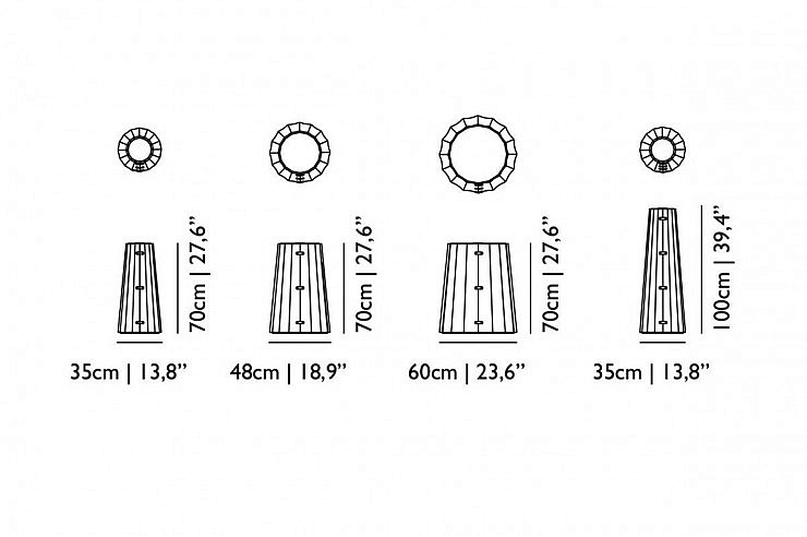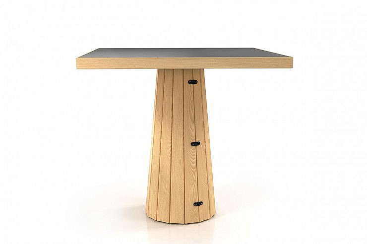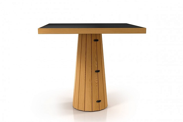 Lesen hrastov ovoj in nova lesena plošča, dopoljnjujeta serijo Container miz oblikovalca Marcela Wandersa. Plošča mize je narejena iz linoleja z lesenim robom, tako je bolj odporna na vreznine in udarce, obenem pa je izgled naraven.