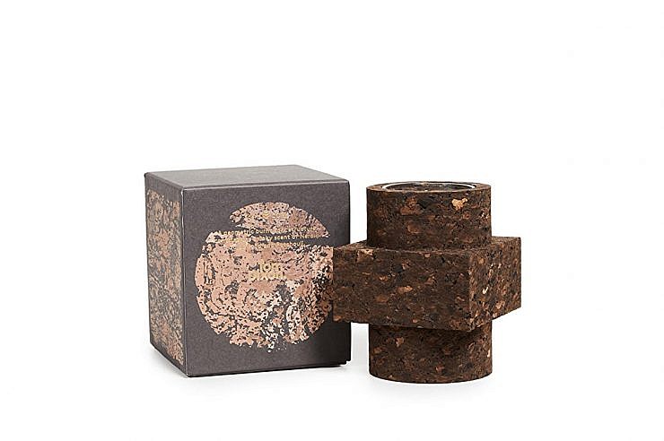 Dišeča sveča. Pluta, soja in parafinski vosek. Primerno tudi, kot darilo v lepo oblikovani embalaži. Dimenzije 13x10x10 cm.