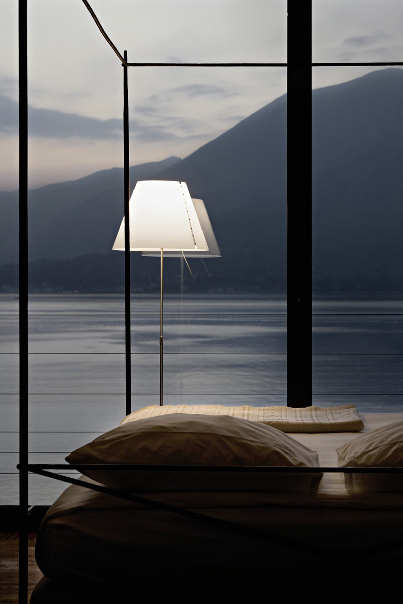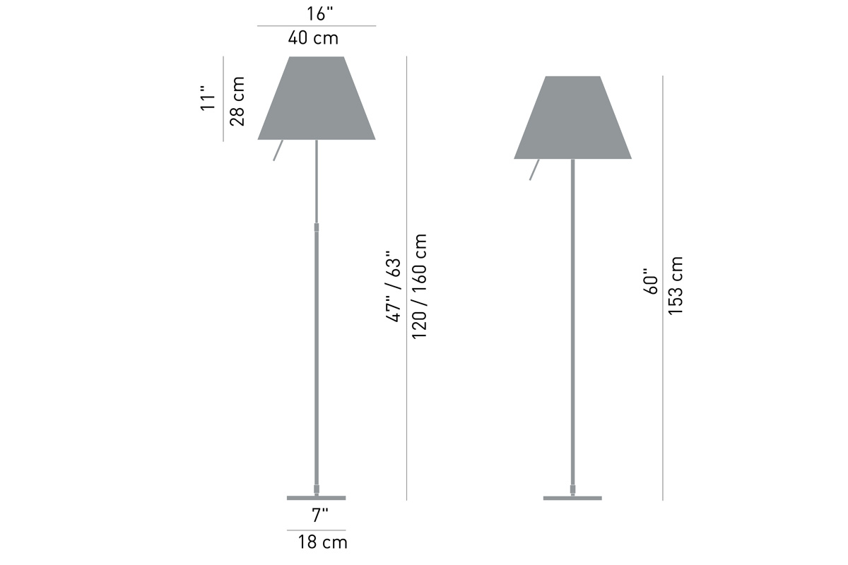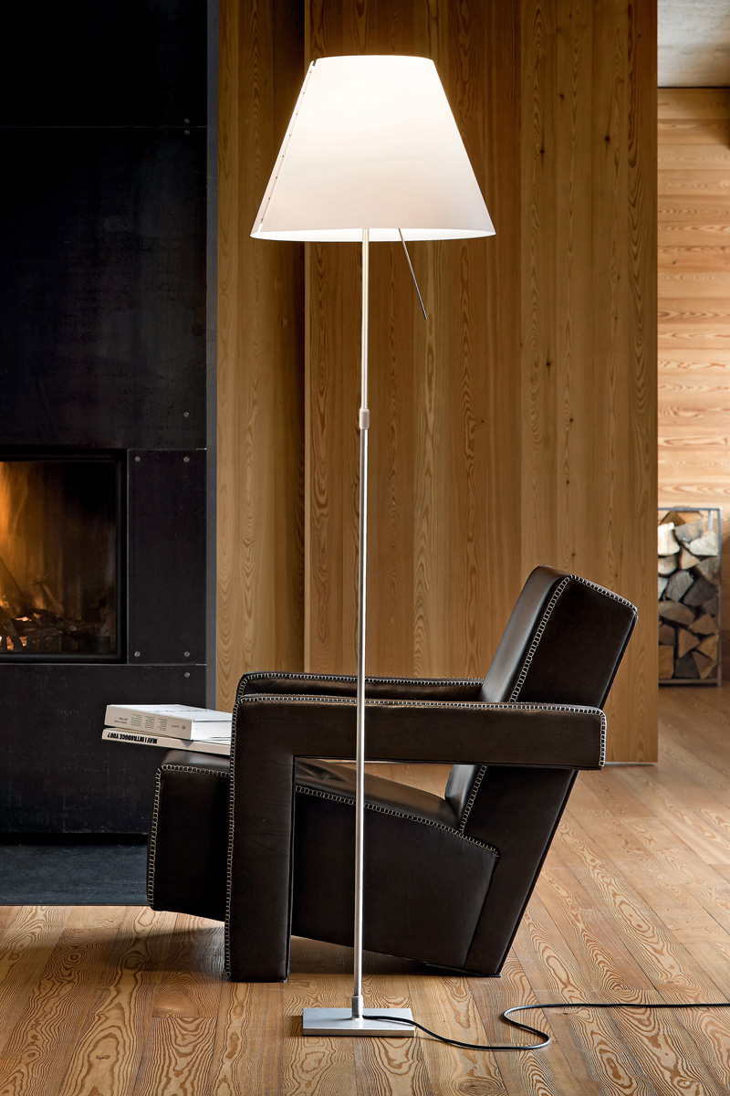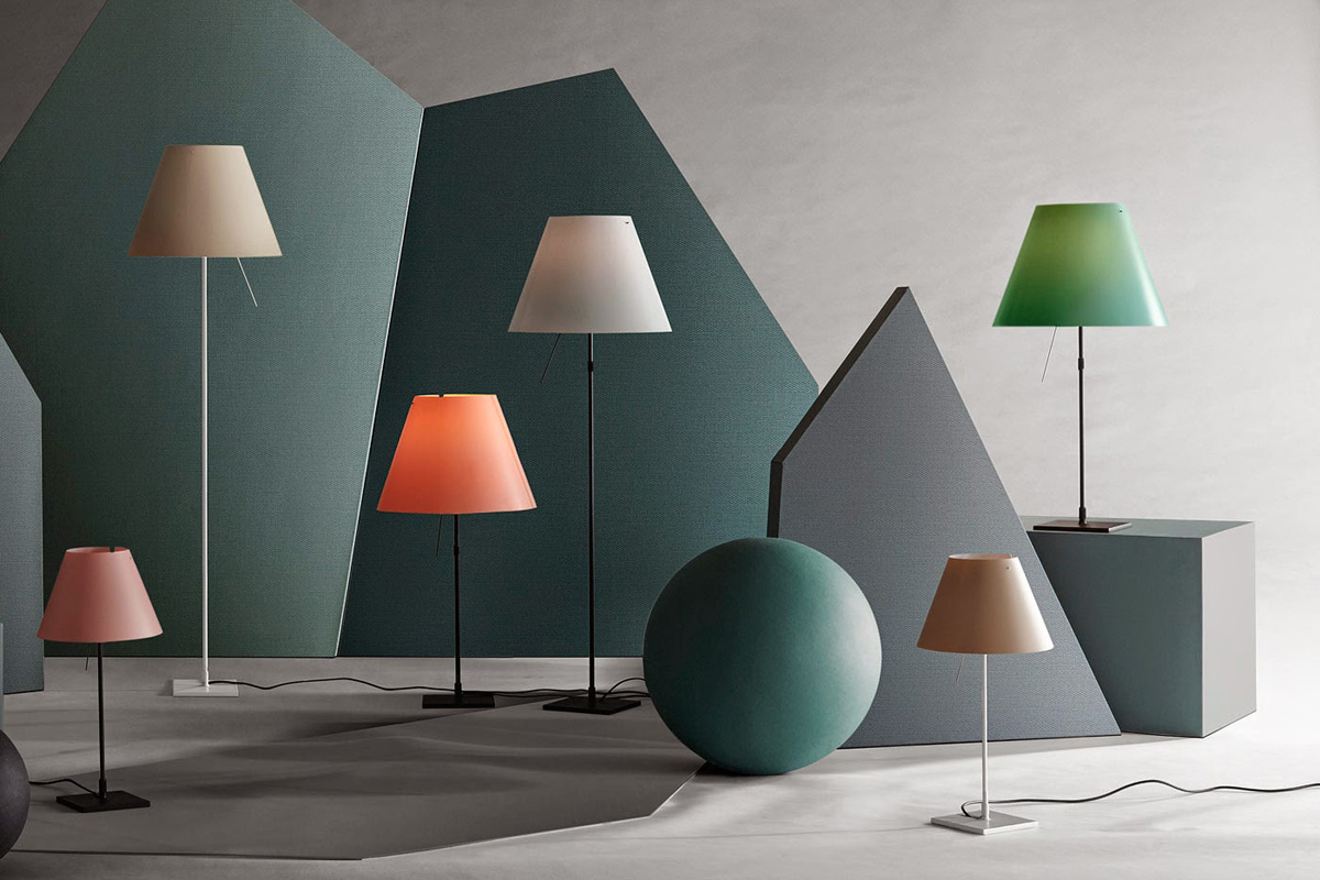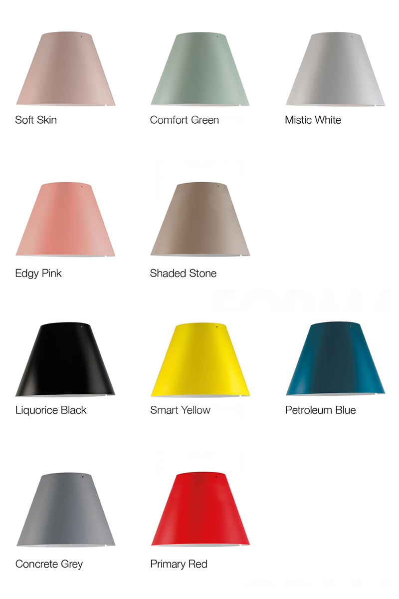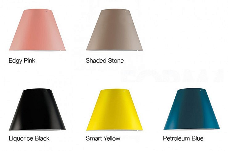 Talno svetilo z veliko svetilnostjo, različne barve baz (črna, aluminij siva ali bela) in velik izbor barv senčnikov. Možnost regulacije in teleskopske nastavitve, prižiganje na senzor.