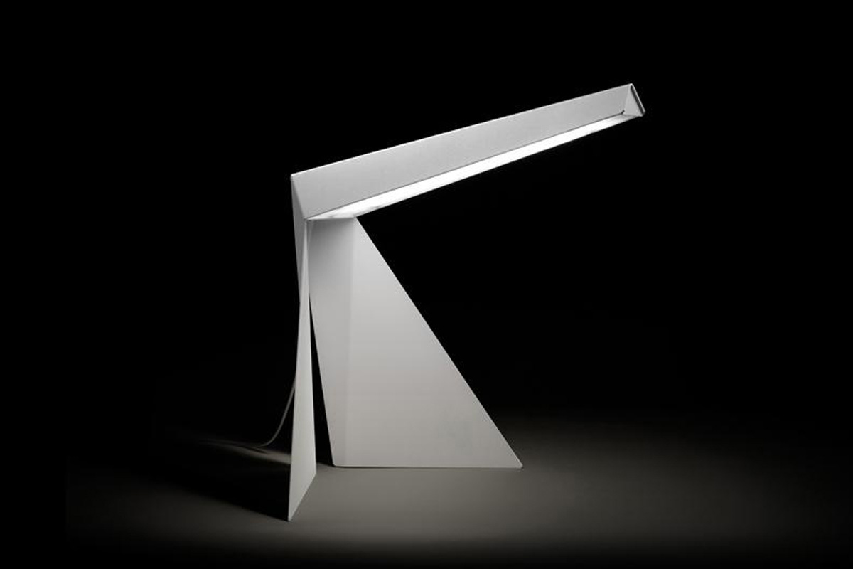 Dekorativno namizno LED svetilo. Svetilo je izdelano iz enega samega kosa aluminija, ki z biganje spominja na obliko origami ptice žerjav.
