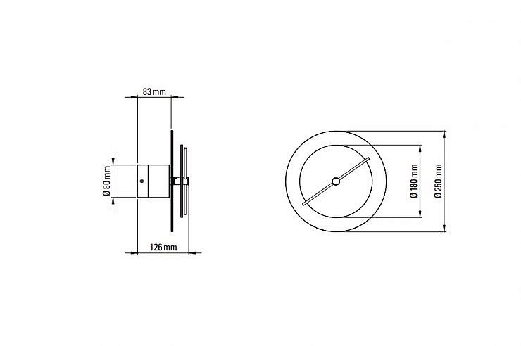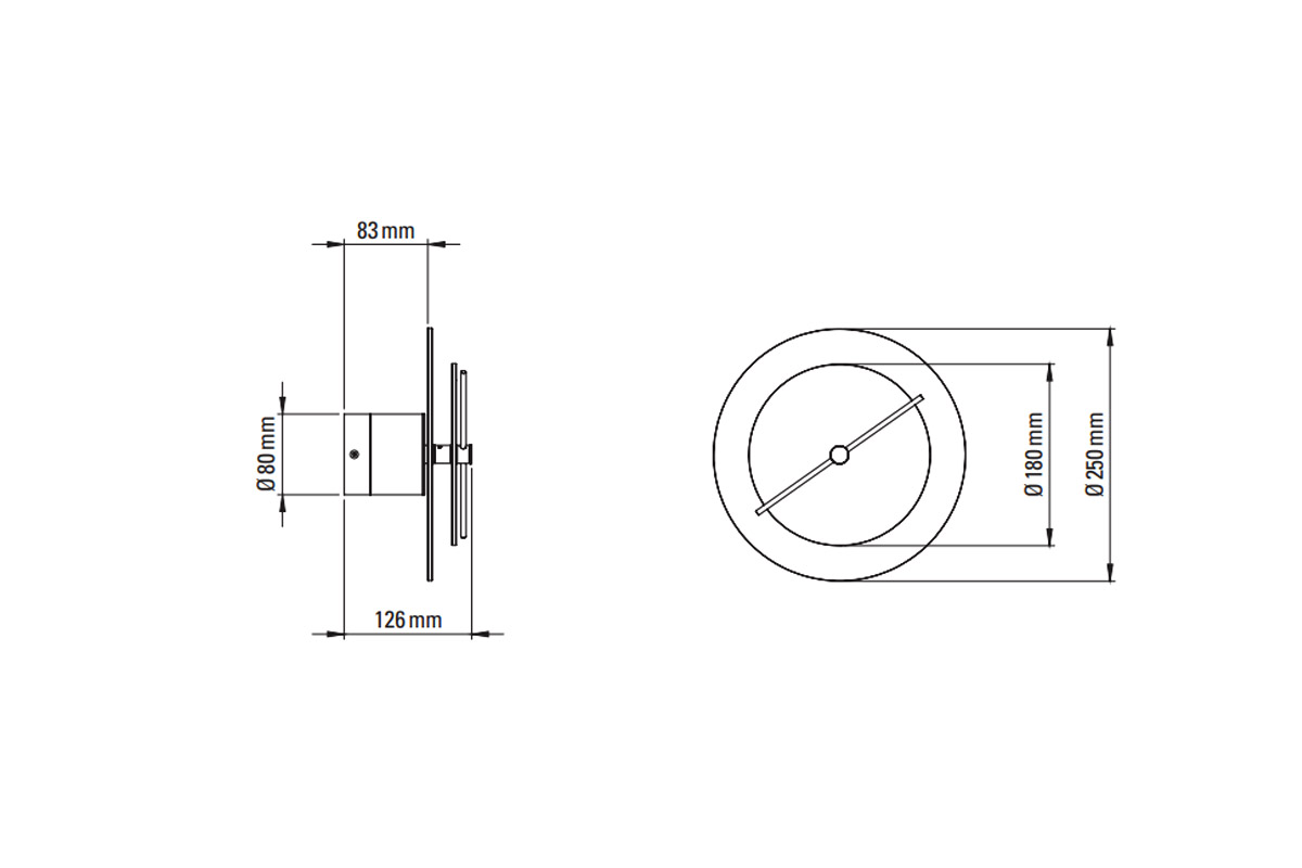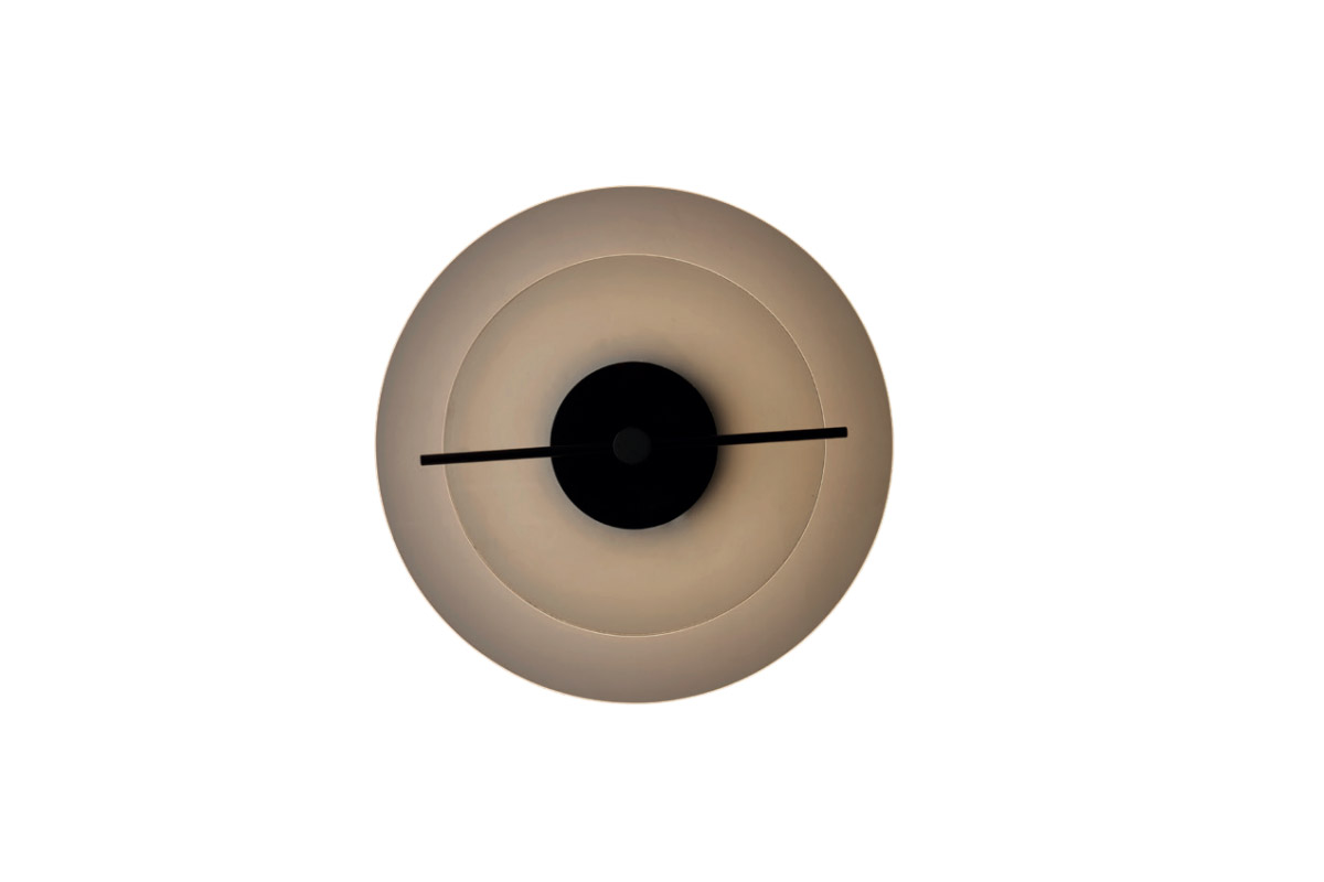 Stensko svetilo, sestavljeno iz dveh steklenih diskov, ki z igrivim postopkom prepuščata mehko svetlobo. S številčnico je mogoče spreminjati odtenek zgornjega diska, kar omogoča, da prehaja več ali manj svetlobe po želji.