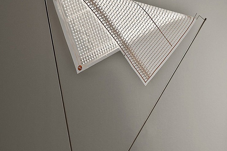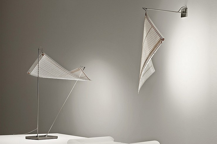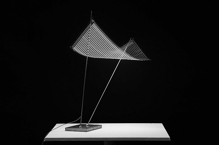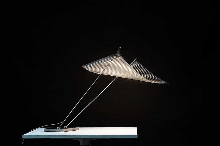 Umetniška namizna luč Dew Drops Table izgleda, kot da prihaja iz prihodnosti. Prozorna plastična folija s 750 integriranimi LED sijalkami lahkotno pada vpeta med kovinske palice, ki so zaradi krogličnih zglobov enostavno nastavljive. Luč oddaja prijetno razpršeno svetlobo in je na voljo tudi kot talna ali stenska različica.