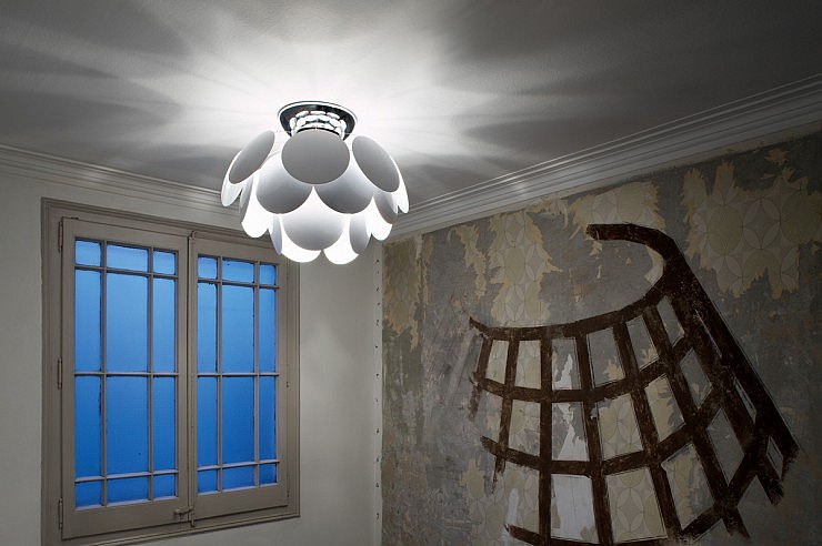 Stropno dekorativno svetilo z pridihom skandinavskega in mediteranskega dizajna.