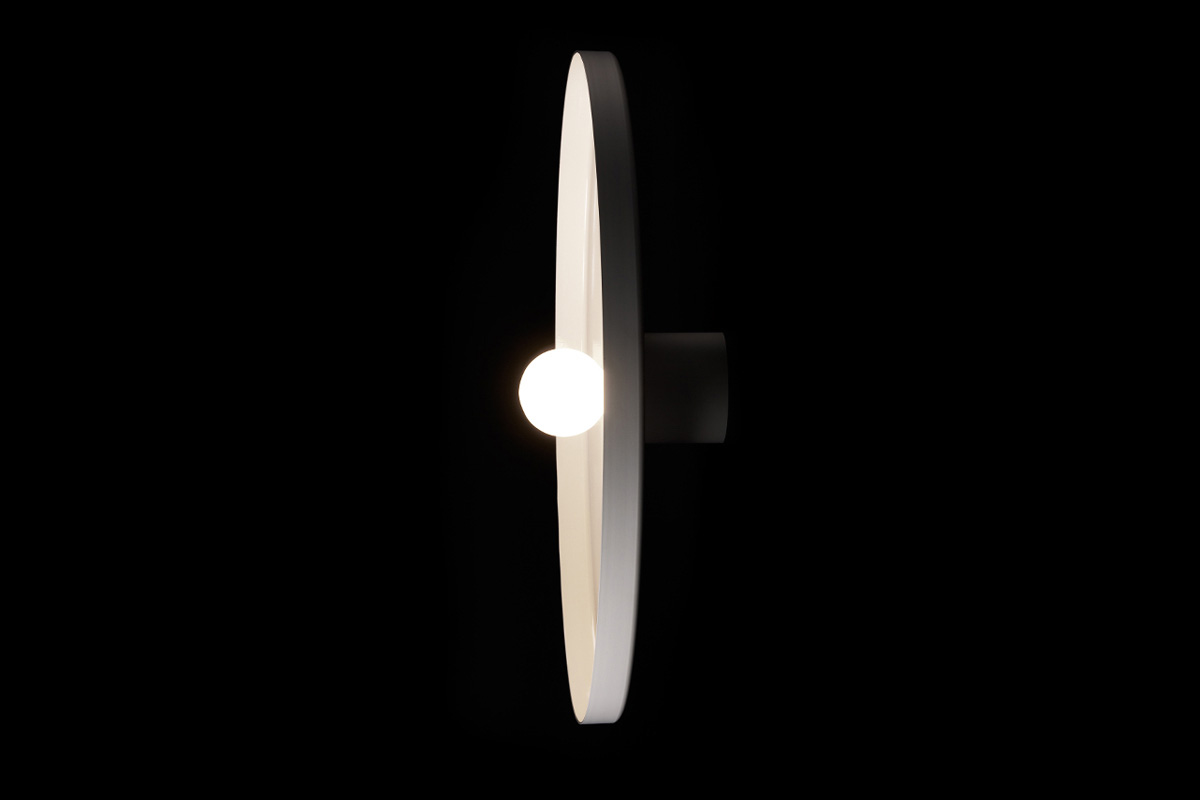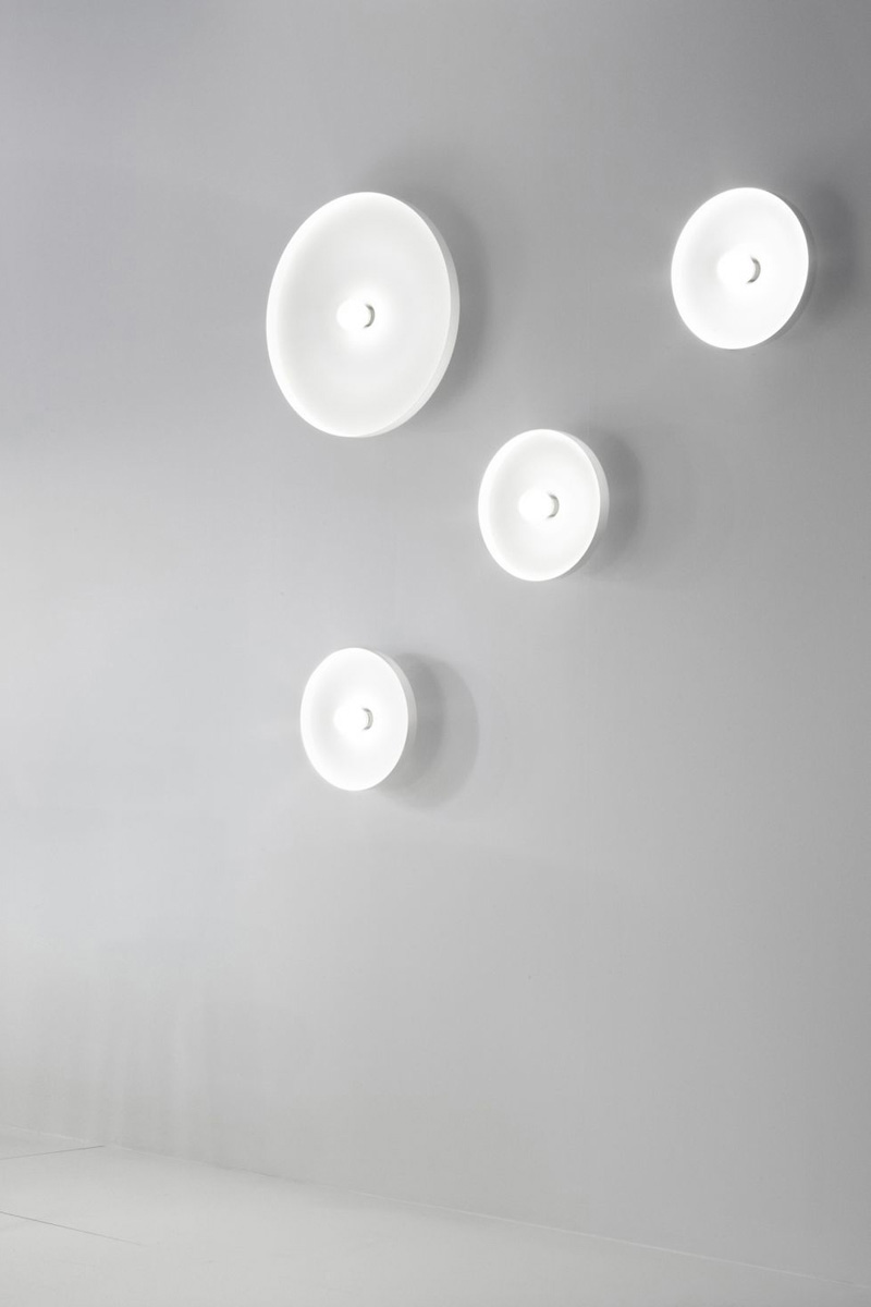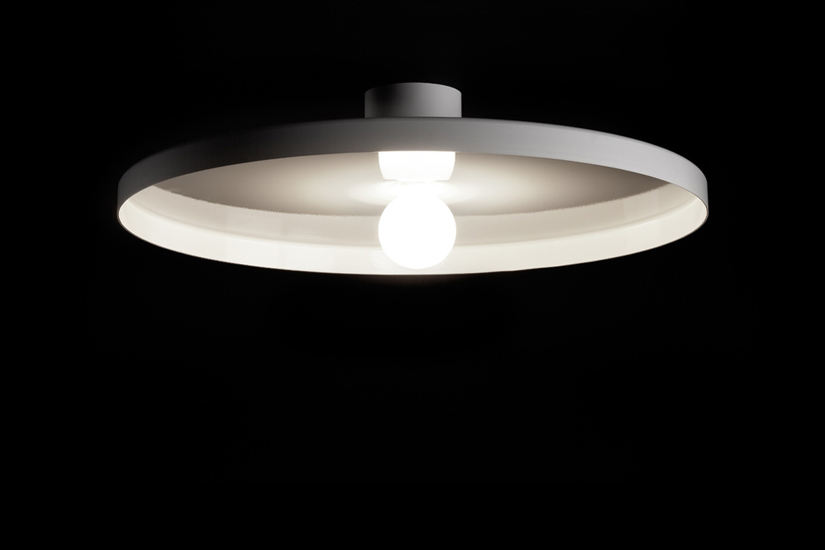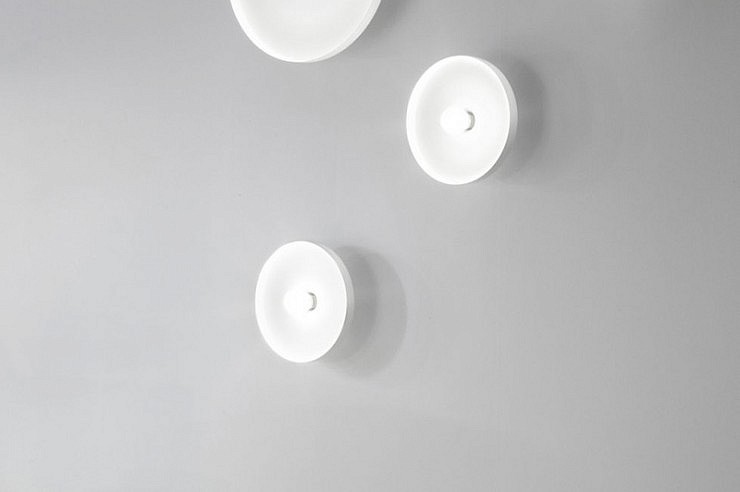 Stensko ali stropno svetilo minimalistične oblike z razpršeno svetlobo v dveh velikostih.