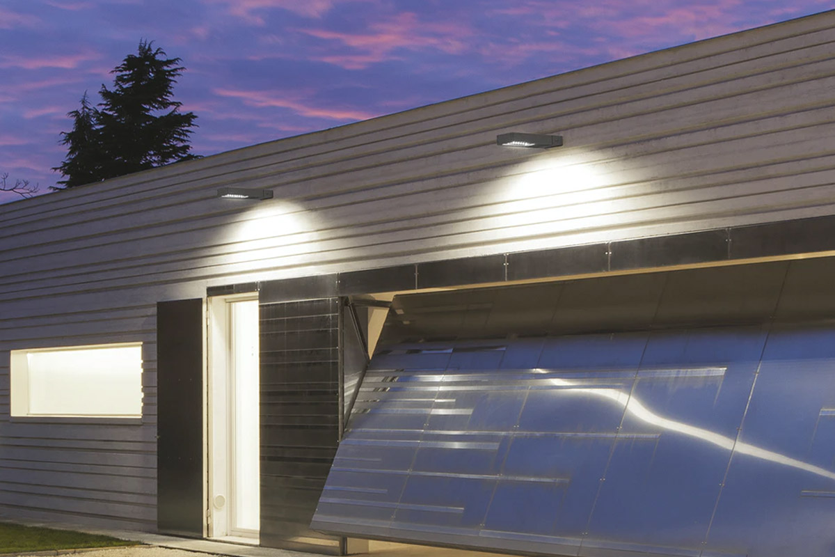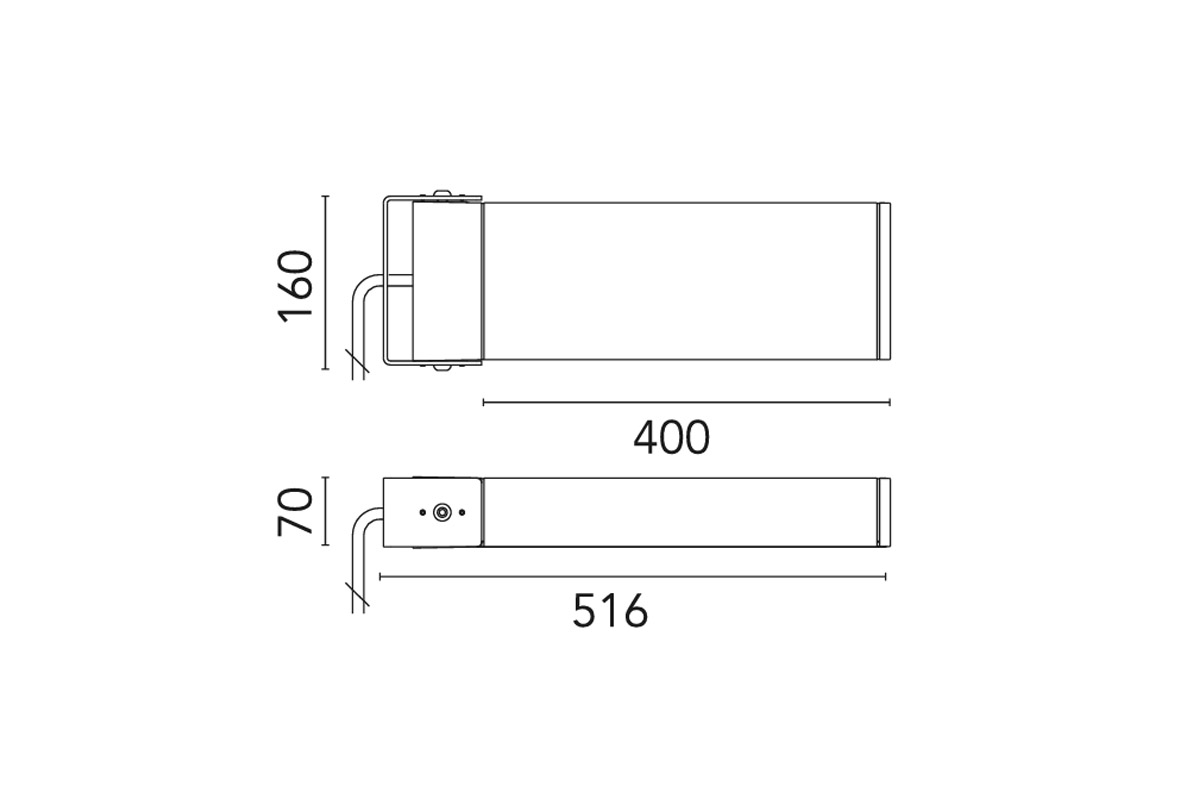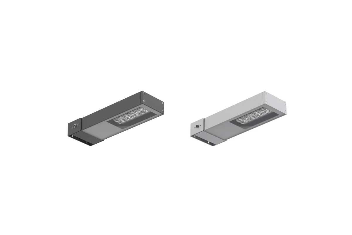 Pravokotna stenska svetilka, na voljo v dveh vrstah žarkov: simetrični in asimetrični, primerna tako za javne kot zasebne prostore.