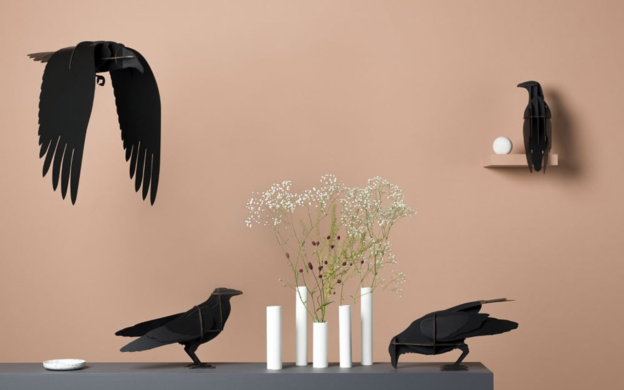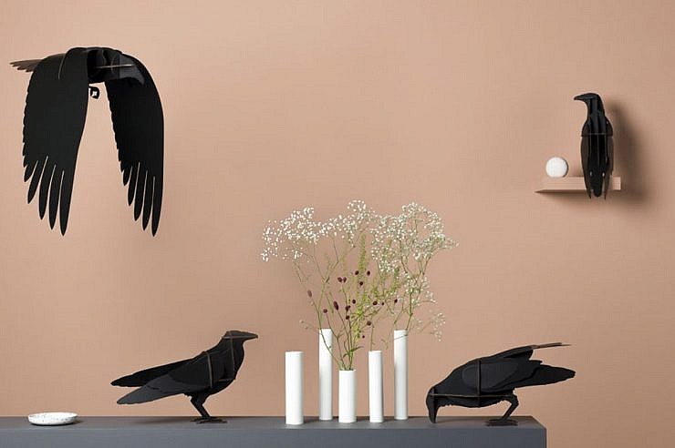 Raven Adam je ena od zbirk šestih črnih ptic v naravni velikosti, vse v različnih položajih. Krokarji so znani po svoji veliki inteligenci. Navdih za vsak artikel tega francoskega proizvajalca ibride prihaja iz lokalnega francoskega okolja in s potovanj po svetu. Sama beseda "ibride" je igra besed za francosko, kar pomeni "hibrid", in mnogi kosi združujejo več oblik in več funkcij. Izdelan je iz vlaknene plošče visoke gostote in polipropilena. Dimenzije Adama so 12x53x20 cm.