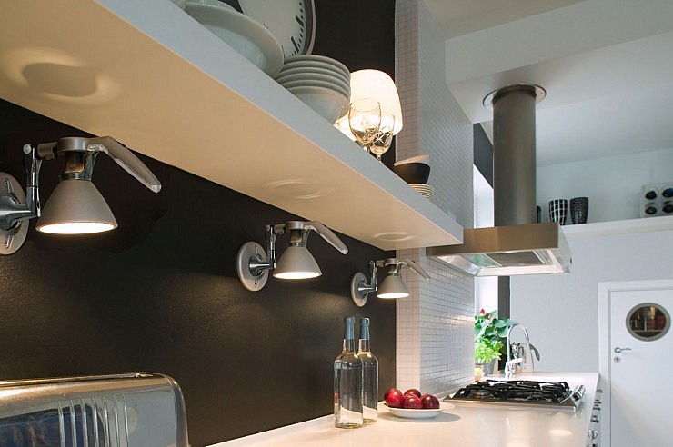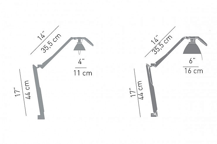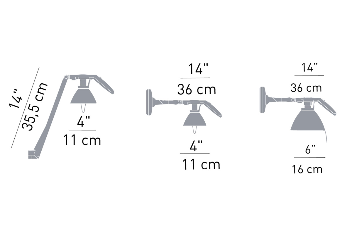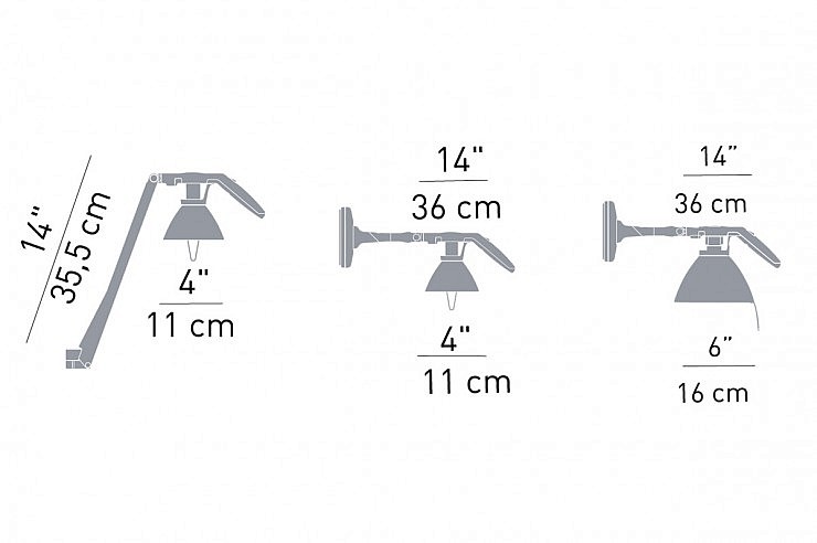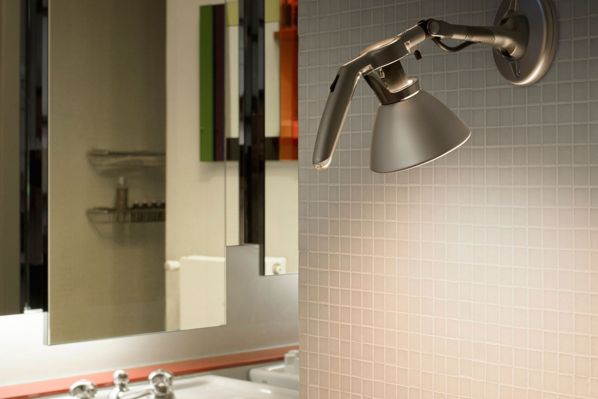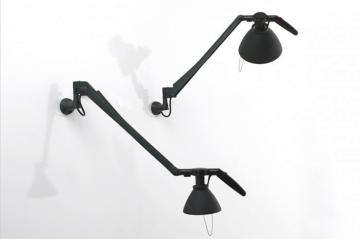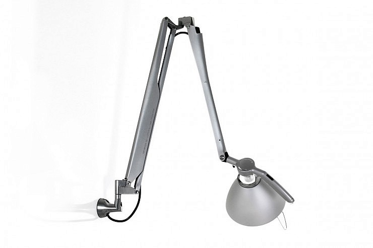 Stensko bralno svetilo z gibljivo roko v dveh velikostih senčila. Prižiganje na roki svetil z možnostjo regulacije.