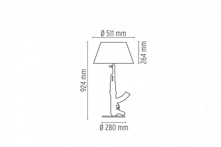 Nenavadna namizna luč, ki je nastala kot demonstracija oblikovalcana na denar in vojno, zagotavlja prijetno usmerjeno svetlobo. Nedvomno zbirateljski kos je na voljo tudi kot talna različica in nudi možnost regulacije svetlobne jakosti.