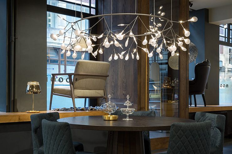 Listna krona svetila se spremeni v objem cvetov in intimno osvetlitev.