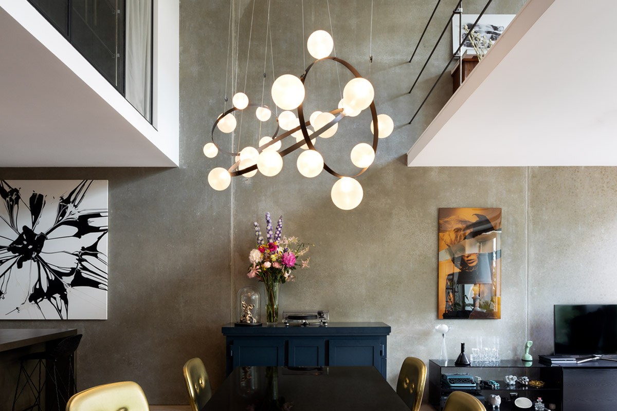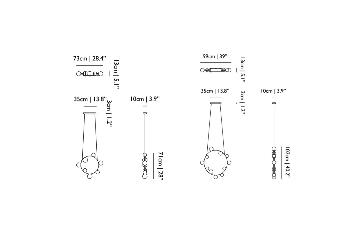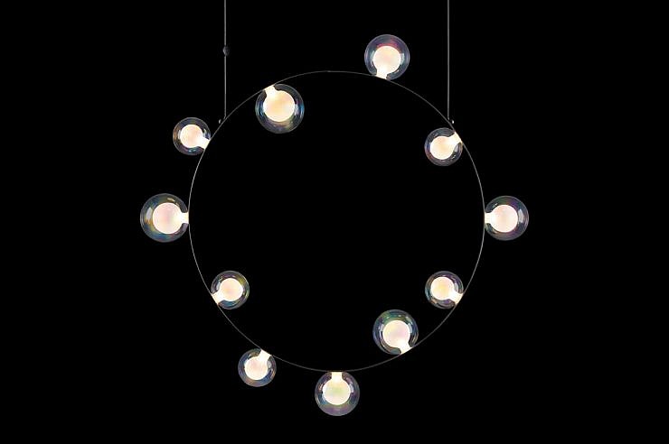 Viseče dekorativno svetilo, ki oblikovno spominja na milne mehurčke.