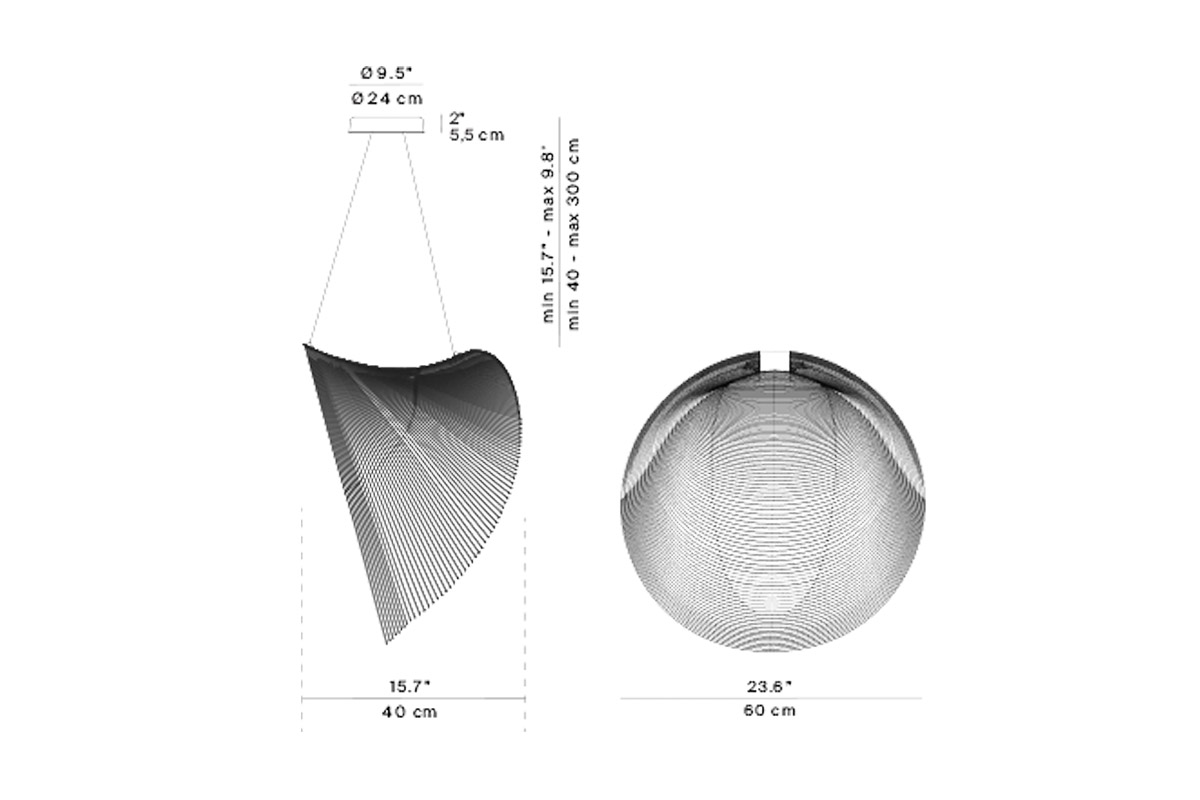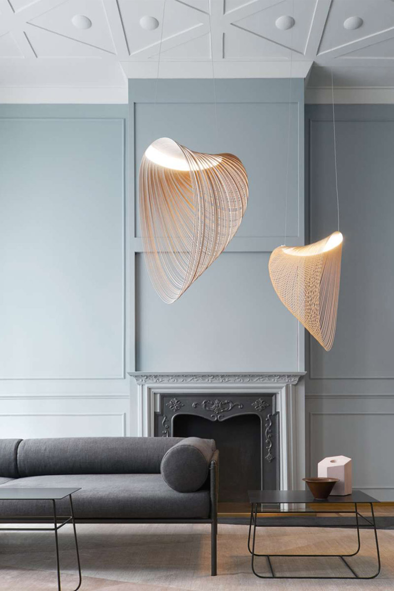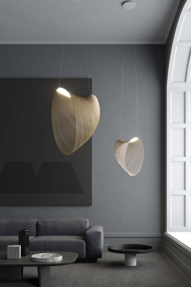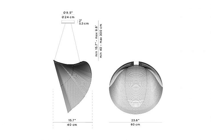 Svetilka je sestavljena iz zelo lahkega telesa, izdelanega iz izredno tanke, fleksibilne vezane plošče, razrezane z laserjem po gosto zapakiranih enako oddaljenih linijah. Ko jo obesimo dobimo strukturo, ki plava v zraku.