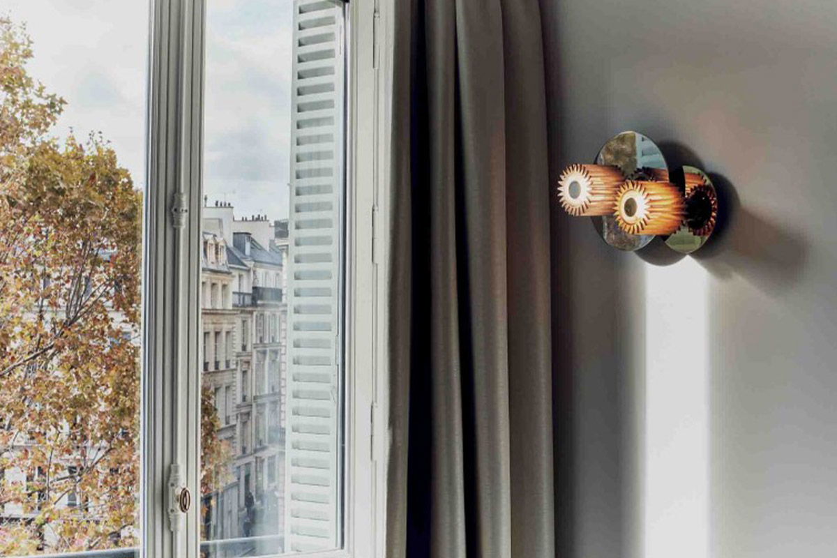 V okviru prenove Paviljona Dufour v Chateau de Versailles sta se Dominique Perrault in Gaëlle Lauriot-Prévost poklonila sončnemu kralju. Kolekcija In The Sun izžareva praznične odtenke zlate in srebrne barve v povezavi z mehkimi sencami. Ne glede na to, ali je pritrjeno na steno, kot stropna svetilo, ali viseče, je rezultat vedno čaroben. Več o svetilu...