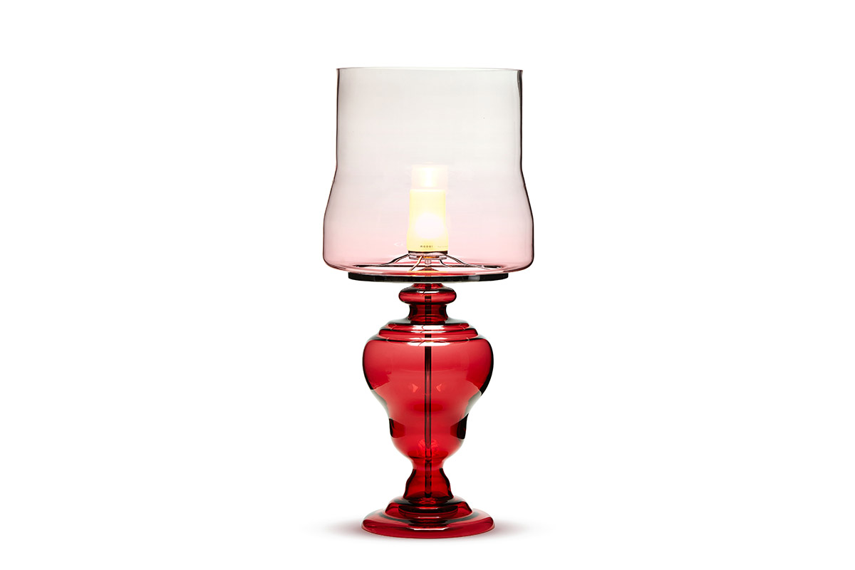 Dekorativno namizno svetilo izdelano iz ročno pihanega stekla.