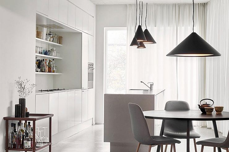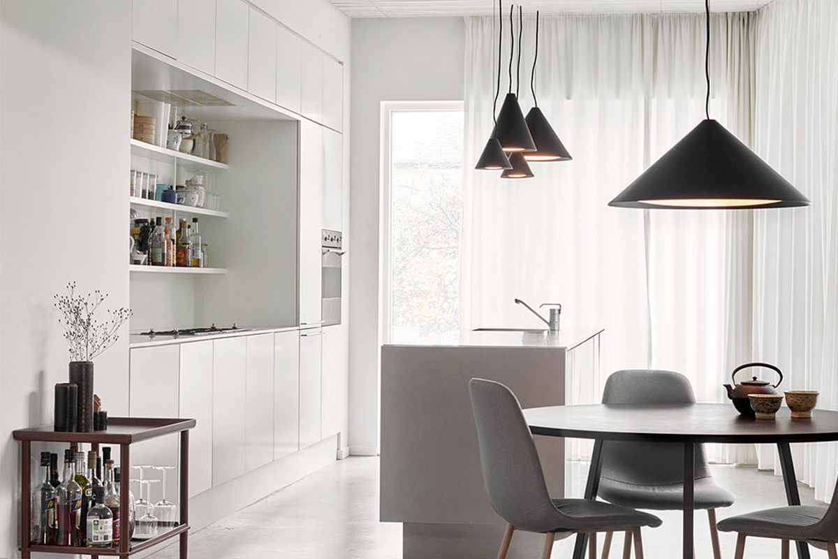 Bela notranja stran zagotavlja, da se svetloba brezhibno odbija. Nežna svetloba se oddaja navzgor skozi enotno, diskretno odprtino na vrhu senčila, kar prispeva k popolnemu ambientu.