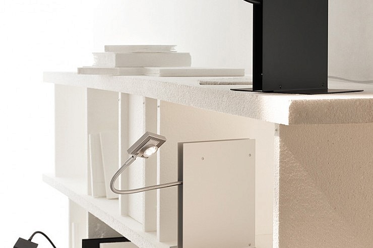 Namizna luč LED's Oskar je oblikovana z namenom, da nam razsvetljuje knjižne police ali da nudi oporo našim njaljubšim knjigam na nočni omarici. En vir LED diode nudi toplo belo svetlobo, fleksibilna kovinska ročica pa omogoča enostavno prilagajanje svetlobnega snopa v vse smeri.