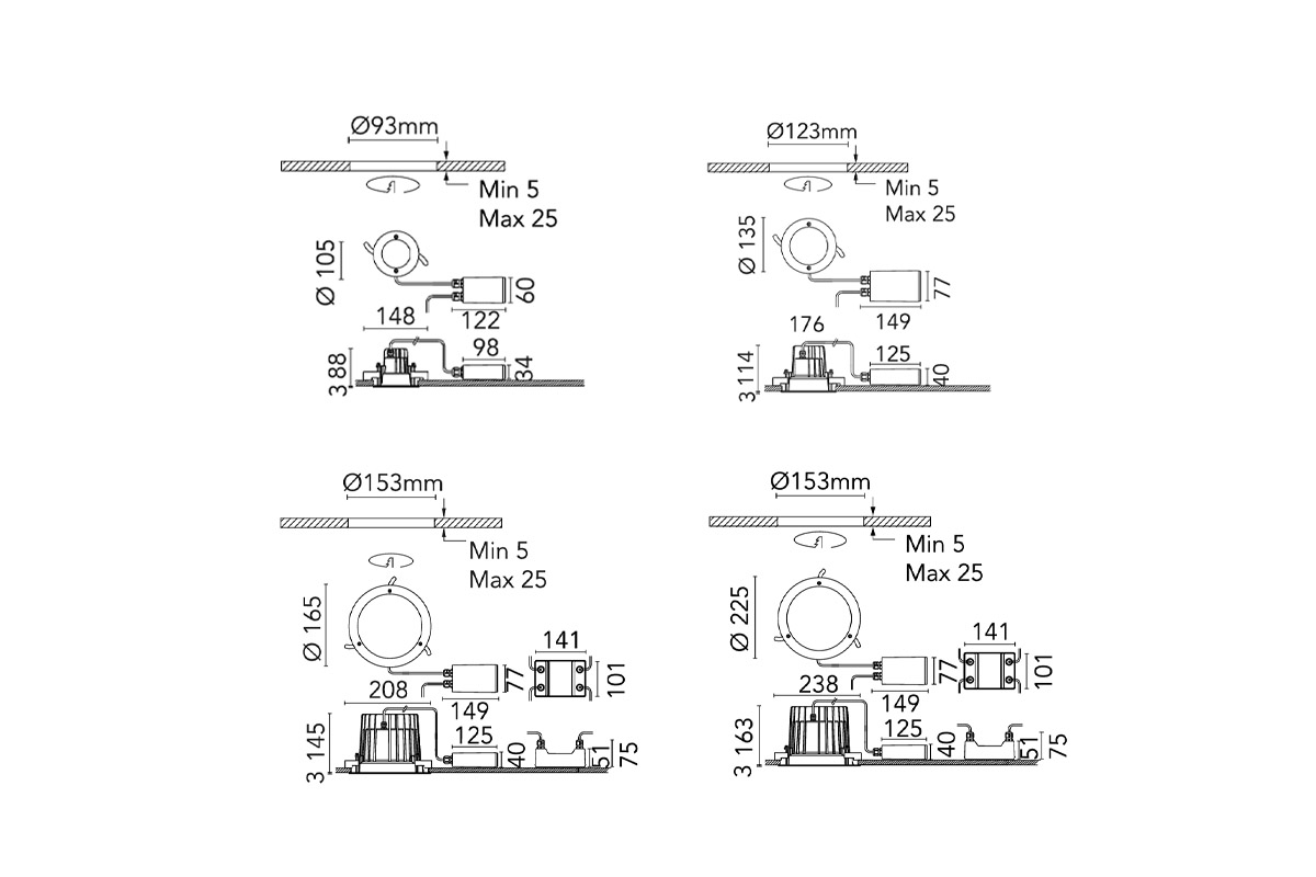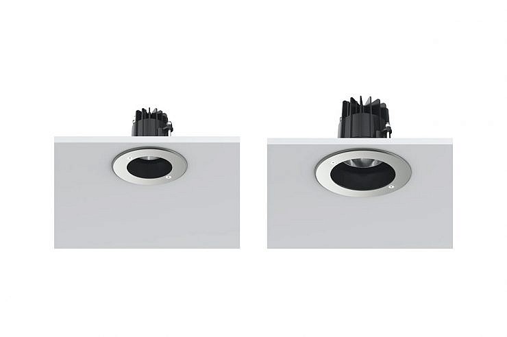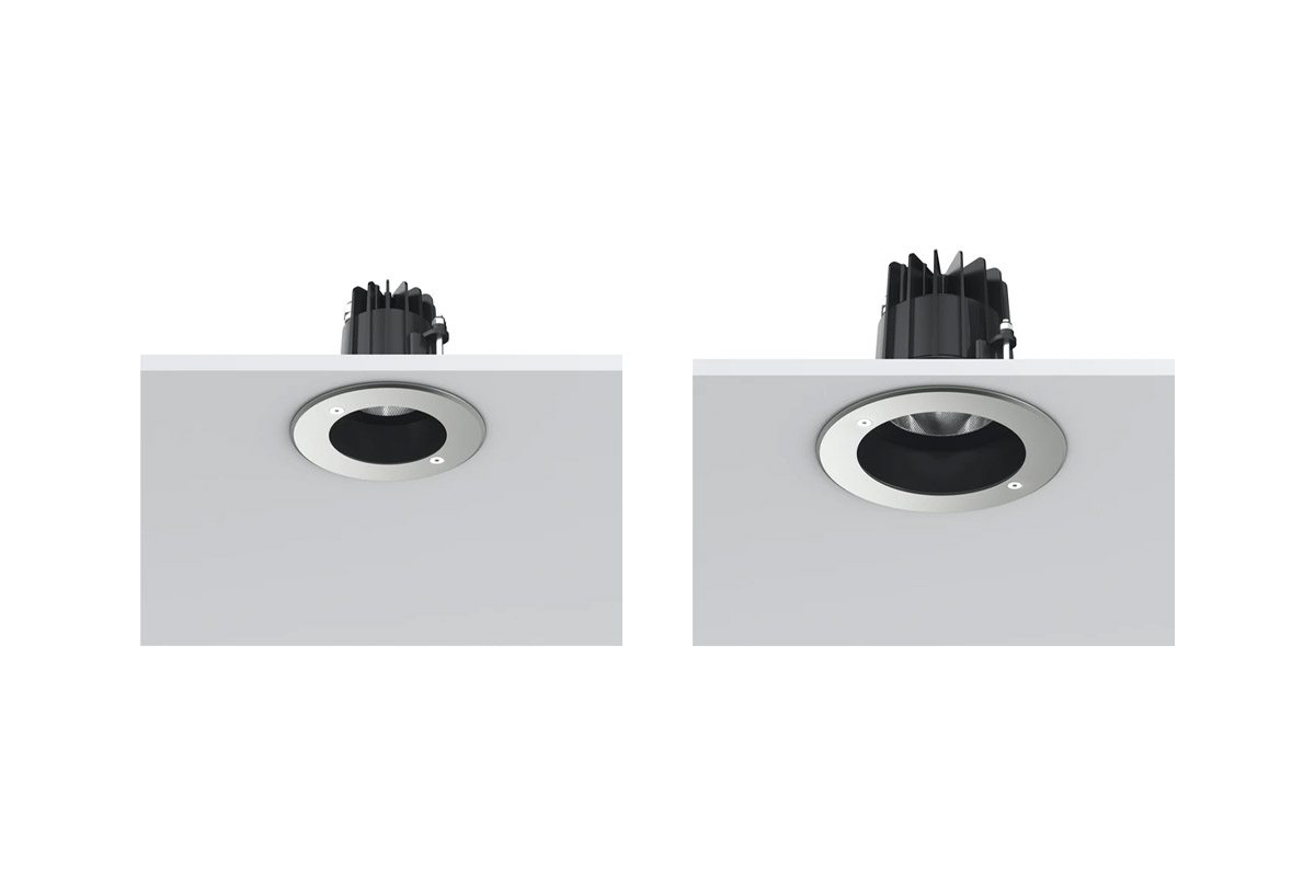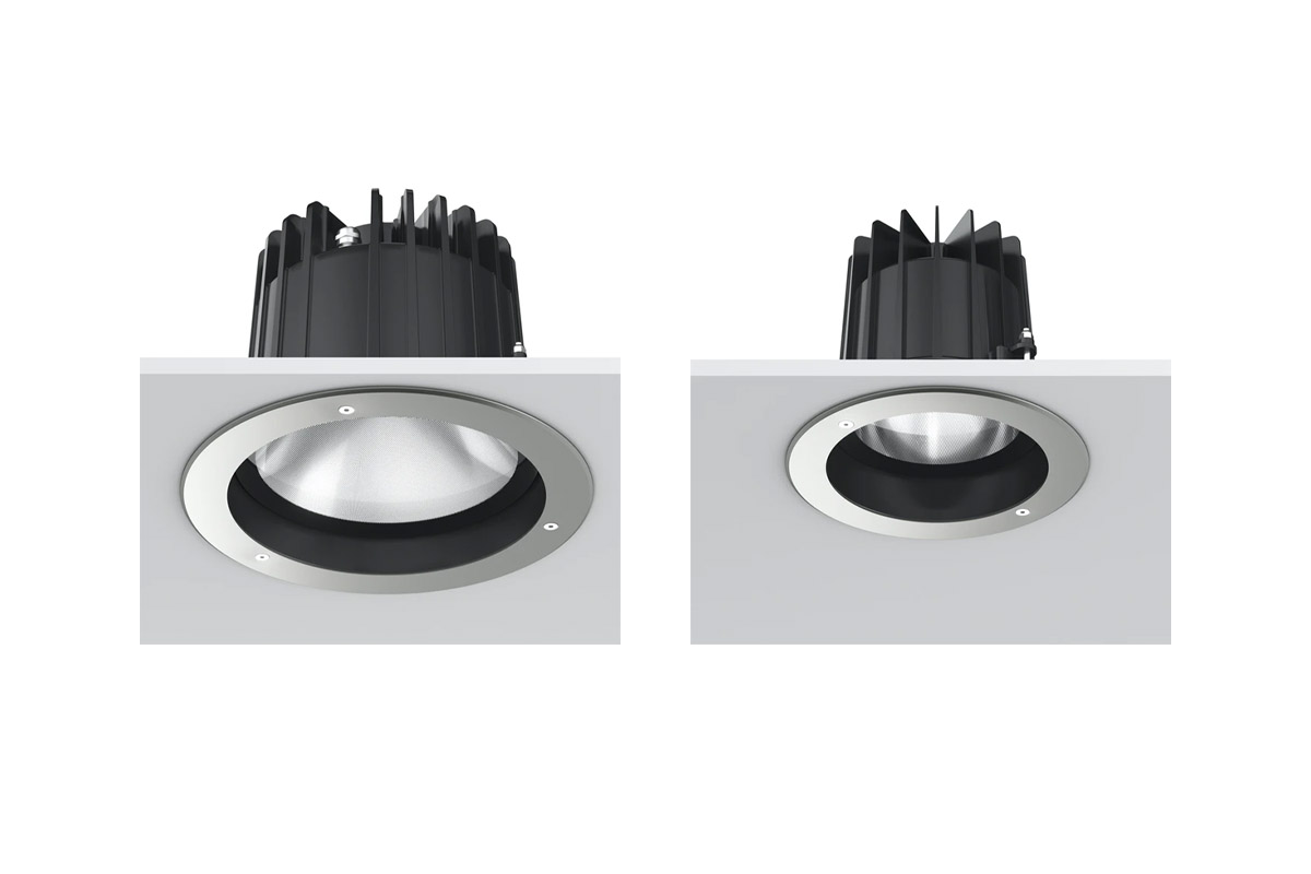 Vgradna stropna svetila z difuzorjem iz teksturiranega stekla, pritrjena z robotskim sistemom lepljenja. Na voljo v različnih velikostih in barvah.