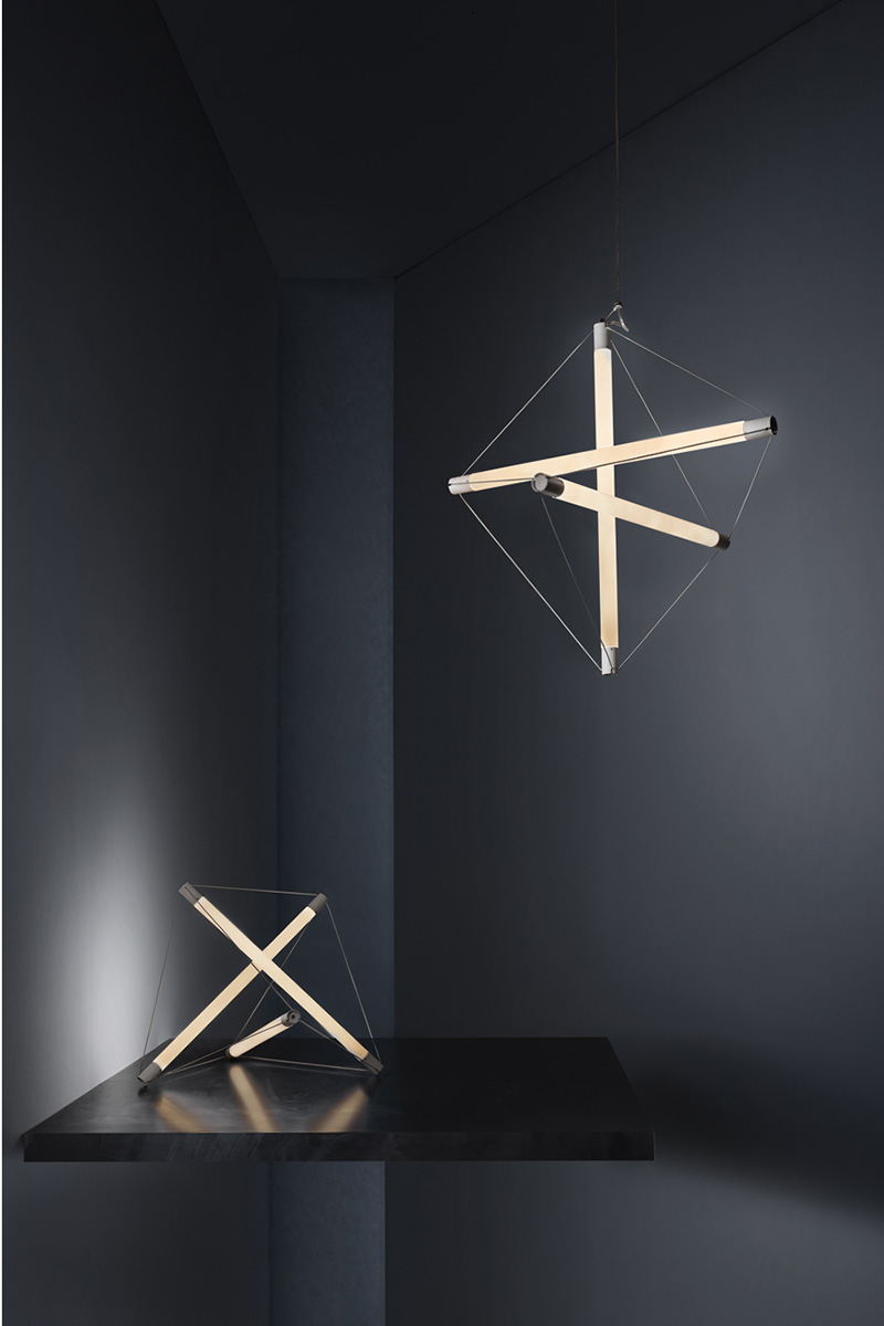 Viseča luč, ki očara s svojo skrivnostno tehnično izvedbo. Tri svetlobne cevi so povezne s tankimi palicami, ki pošiljajo napajanje, a ni moč ugotoviti, kje se elekrtična moč začne in konča. Light Structure osvetljuje prostor s prijetno razpršeno svetlobo. Na voljo tudi talna različica.