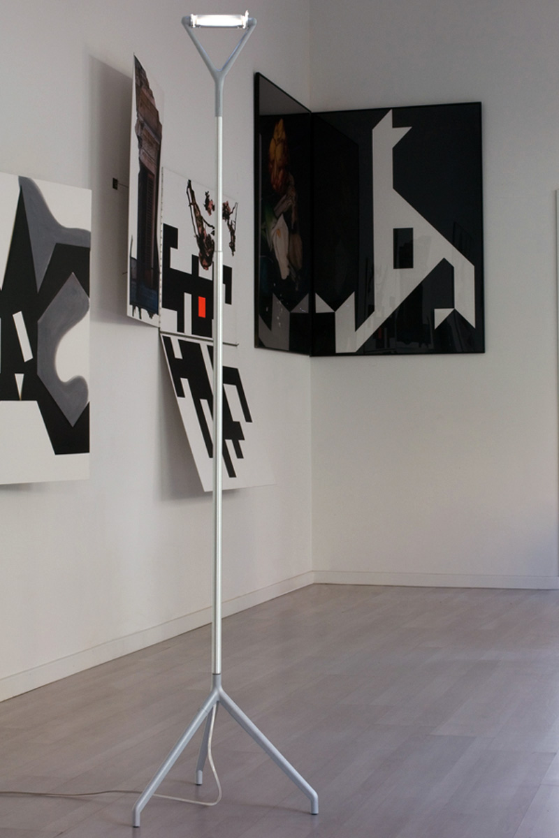 Talno svetilo z indirektno svetlobo in nastavljivo glavo ter nastavljivo višino.