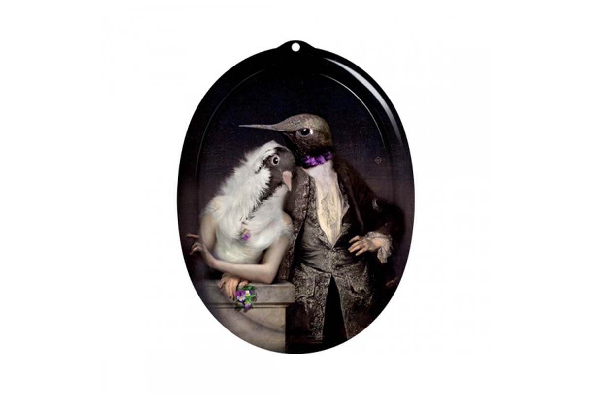 Rosita in Honoré, dva očarljiva lika, ki sta se zaljubila. Lovebirds je majhen pladenj, ki služi za postrežbo gostov, ki ga lahko nato prosto razstavimo na steni kot slikovno delo, mitološko sliko. Izdelan iz HPL - visokotlačni laminat (odporen tudi na toploto). Ni primeren za čiščenje v pomivalnem stroju. Dimenzija: 27x20 cm.
