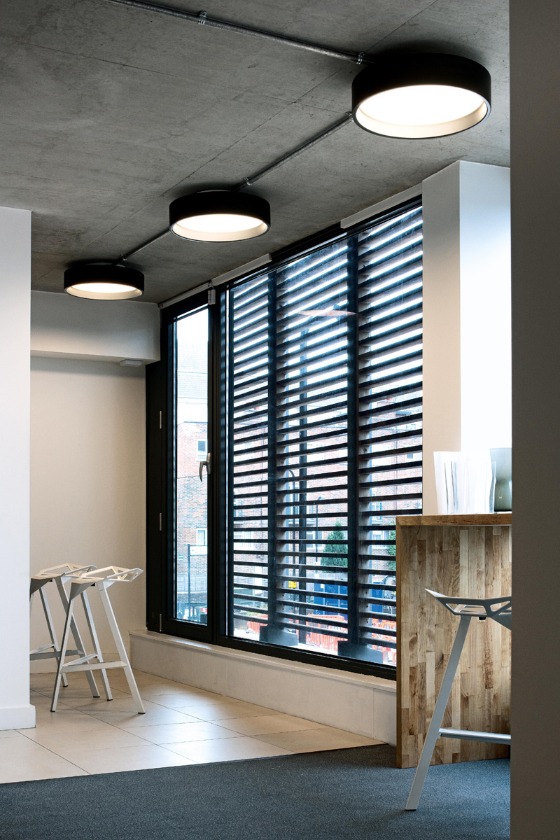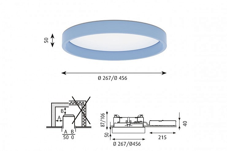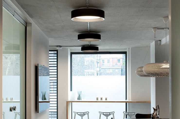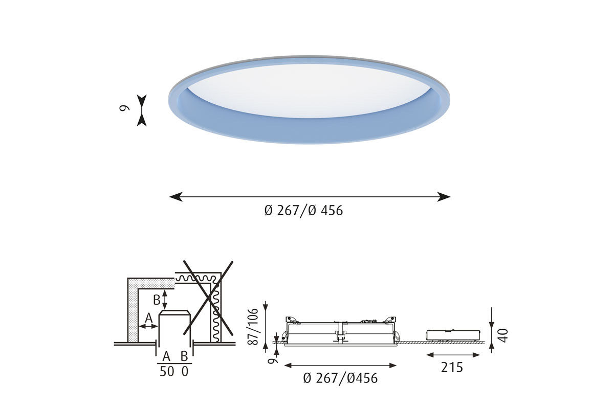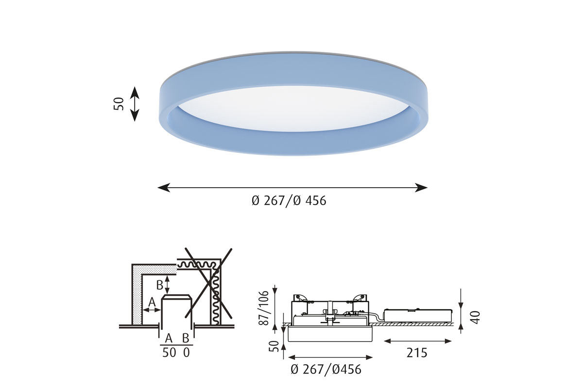 Stropno svetilo z opalnim akrilnim senčilom z razpršeno svetlobo. Tip svetila tudi v viseči, polvgradni ali vgradni izvedbi.