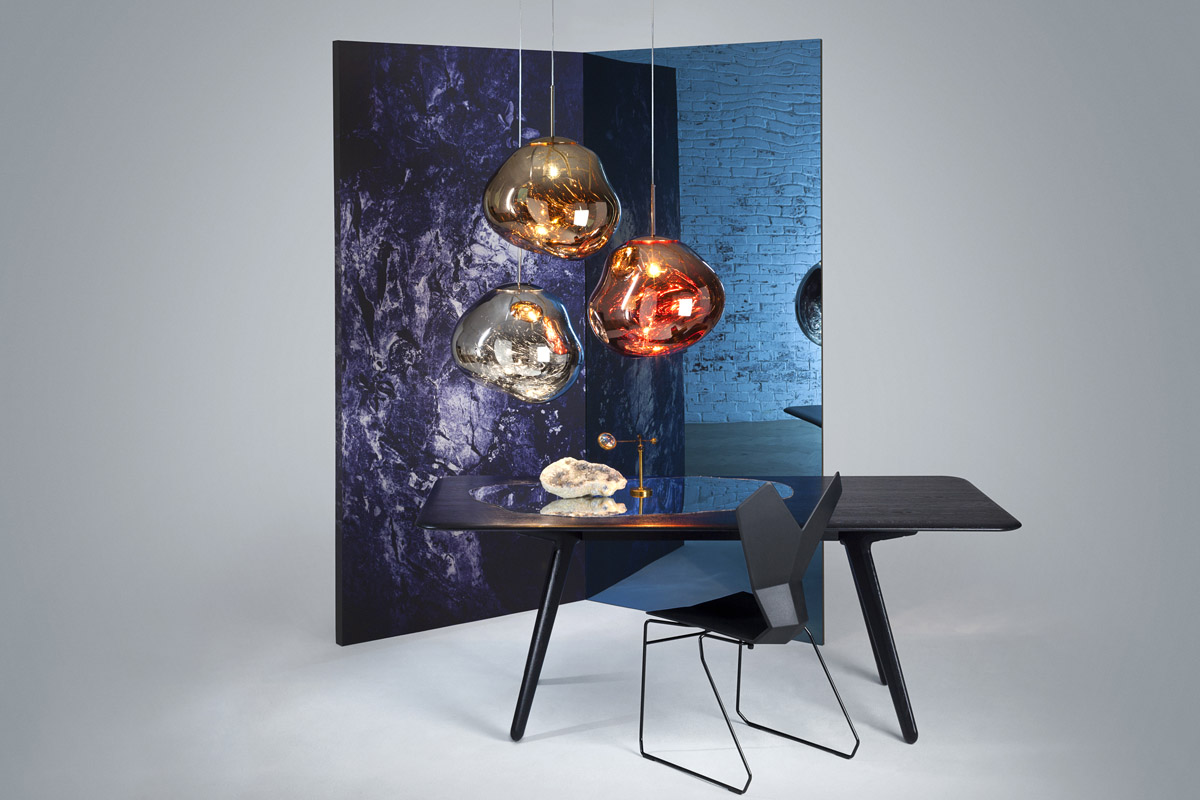 Ime Melt že samo pove Stopljeno. Svetilo je produkt poizkusov, ki je dosegel, da s procesom vakumiranega metaliziranja svetilo deluje kot stopljeno steklo. Posebnost je tudi v pojavnosti svetila. Pri ugasnjenem svetlobnem viru svetilo odseva prostor, ko se svetlobni vir prižge, je svetilo polprosojno. Barva metalizacije je v srebrni, zlati in bakreni.