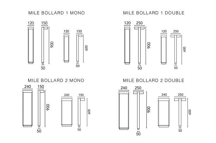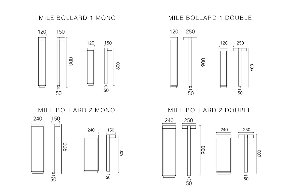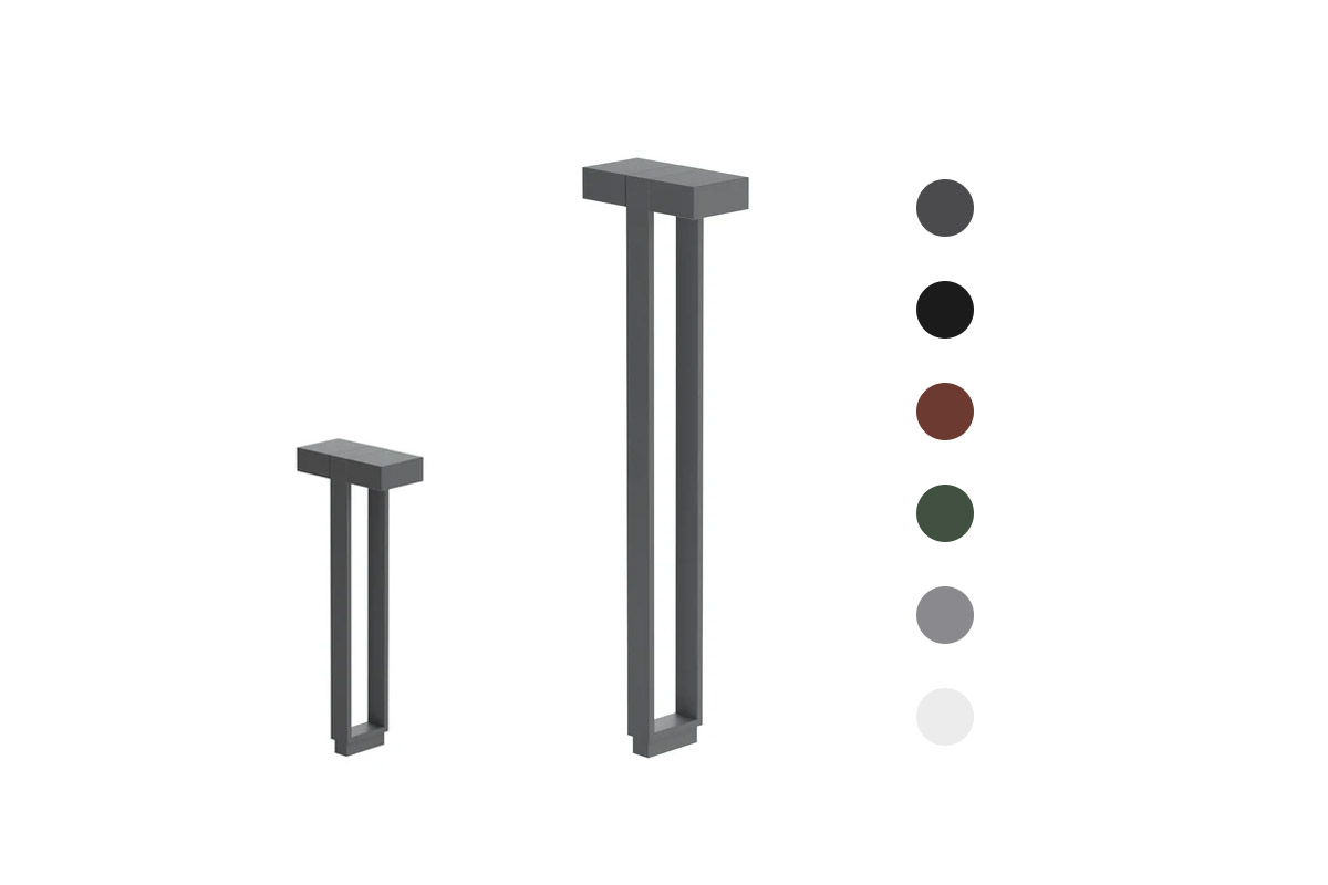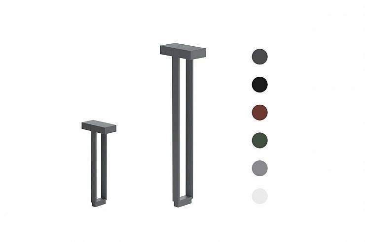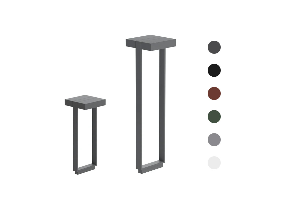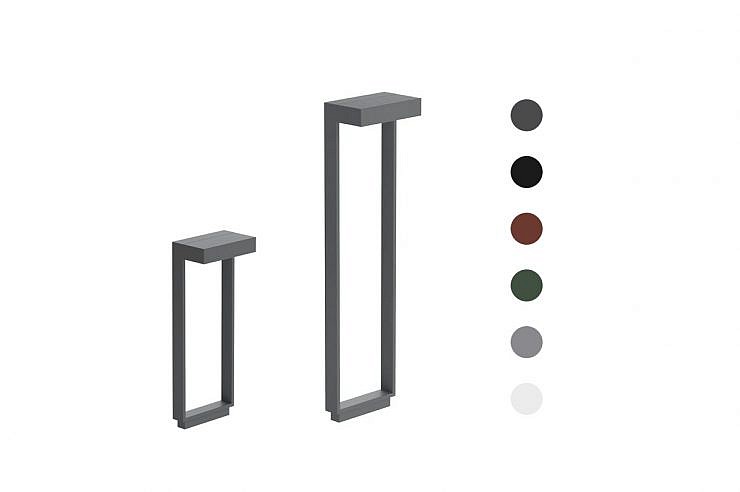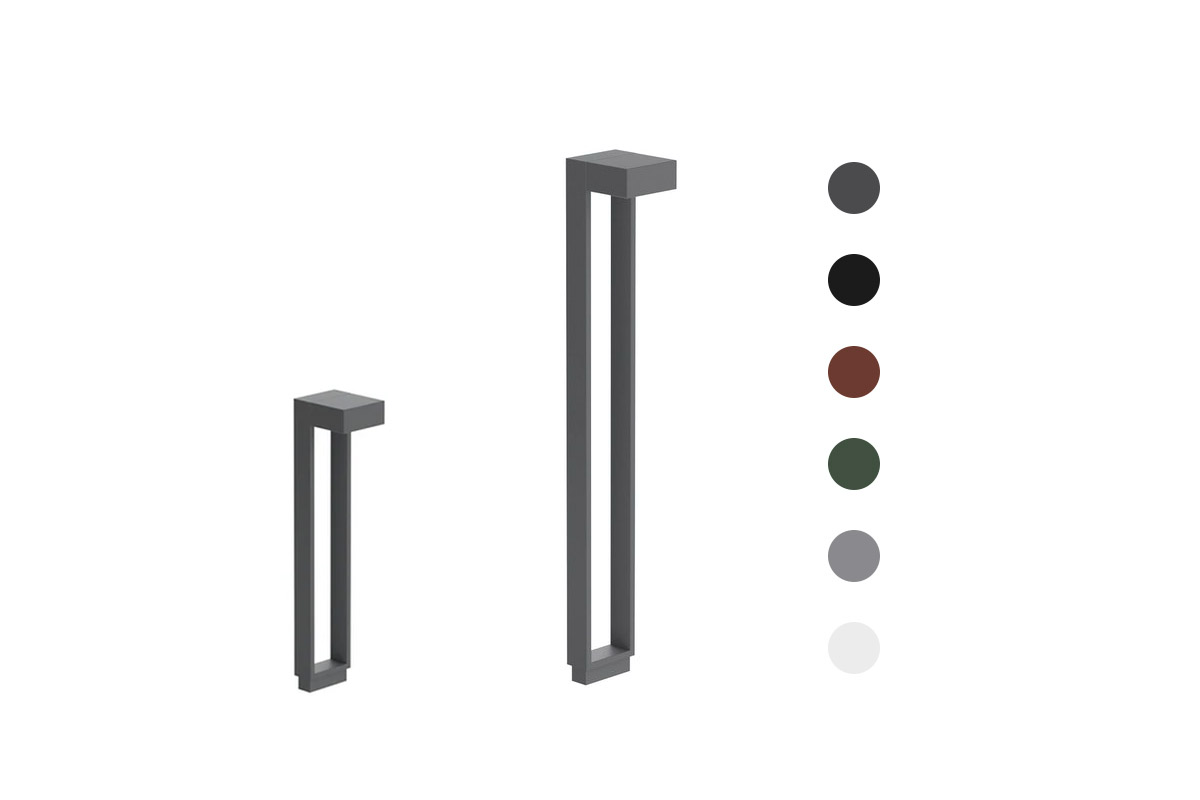 Zbirka enot zunanje razsvetljave s strogim, minimalističnim oblikovanjem in LED svetlobnim virom. Lahko se kombinira s stenskimi različicami v isti kolekciji. Enosmerni in dvosmerni stebrički so na voljo v dveh višinah in dveh velikostih glede na vir svetlobe in zahtevano intenzivnost.