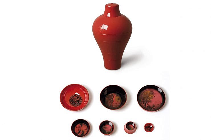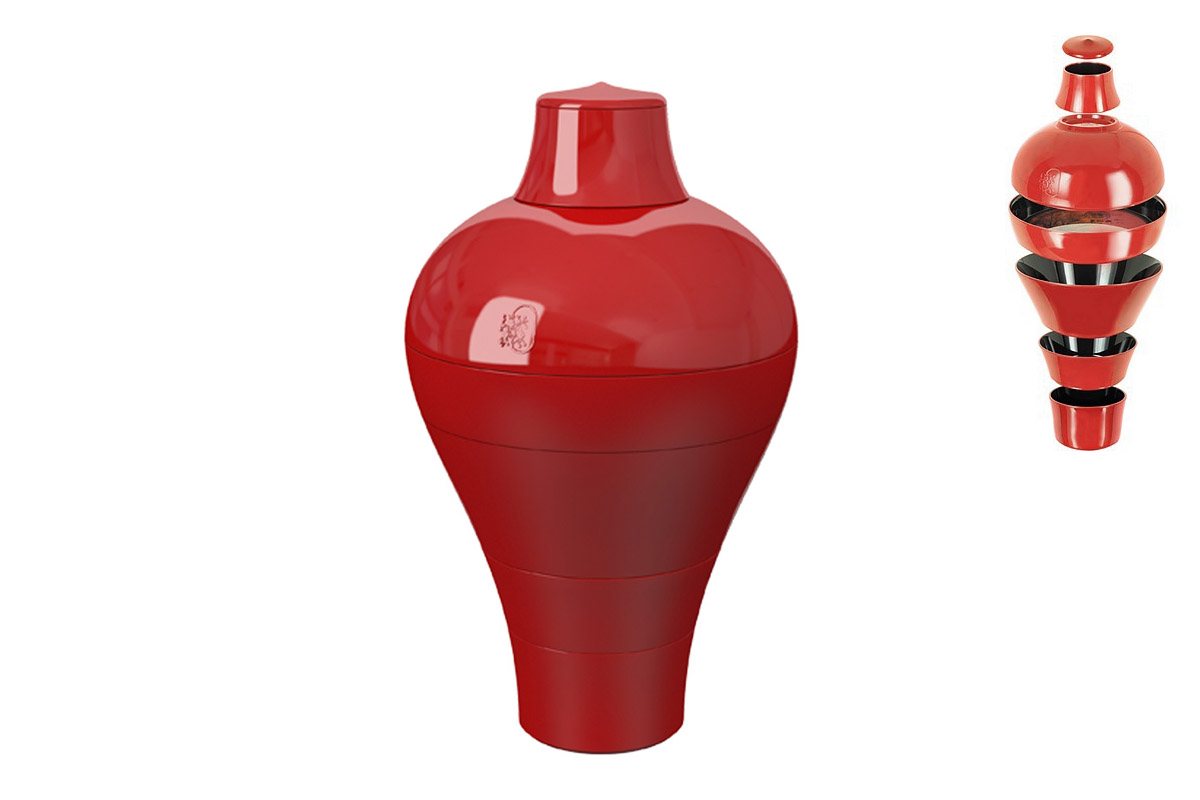 Zložljiv 6-delni namizni pribor Ibride Ming Red je odličen okrasni predmet in idealen kot darilo. Komplet je izdelan iz melamina, opremljen z visokokakovostnim tiskom fotografij kitajskih motivov. Set je sestavljen iz 2 skledi, 2 manjši skledi, 1 servirnega pladnja in 1 majhne pločevinke s pokrovom. Ko se zloži, namizna posoda dobi obliko vaze dimenzij - višina 39 cm in premer 22,5 cm.