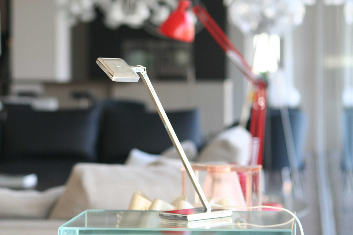 Manjša različica Kevin LED luči je prav tako oblikovno dovršena delovna namizna luč z usmerjeno in nastavljivo močjo svetlobe. Omogoča enostavno prilagajanje svetlobe različnim delovnim nalogam.